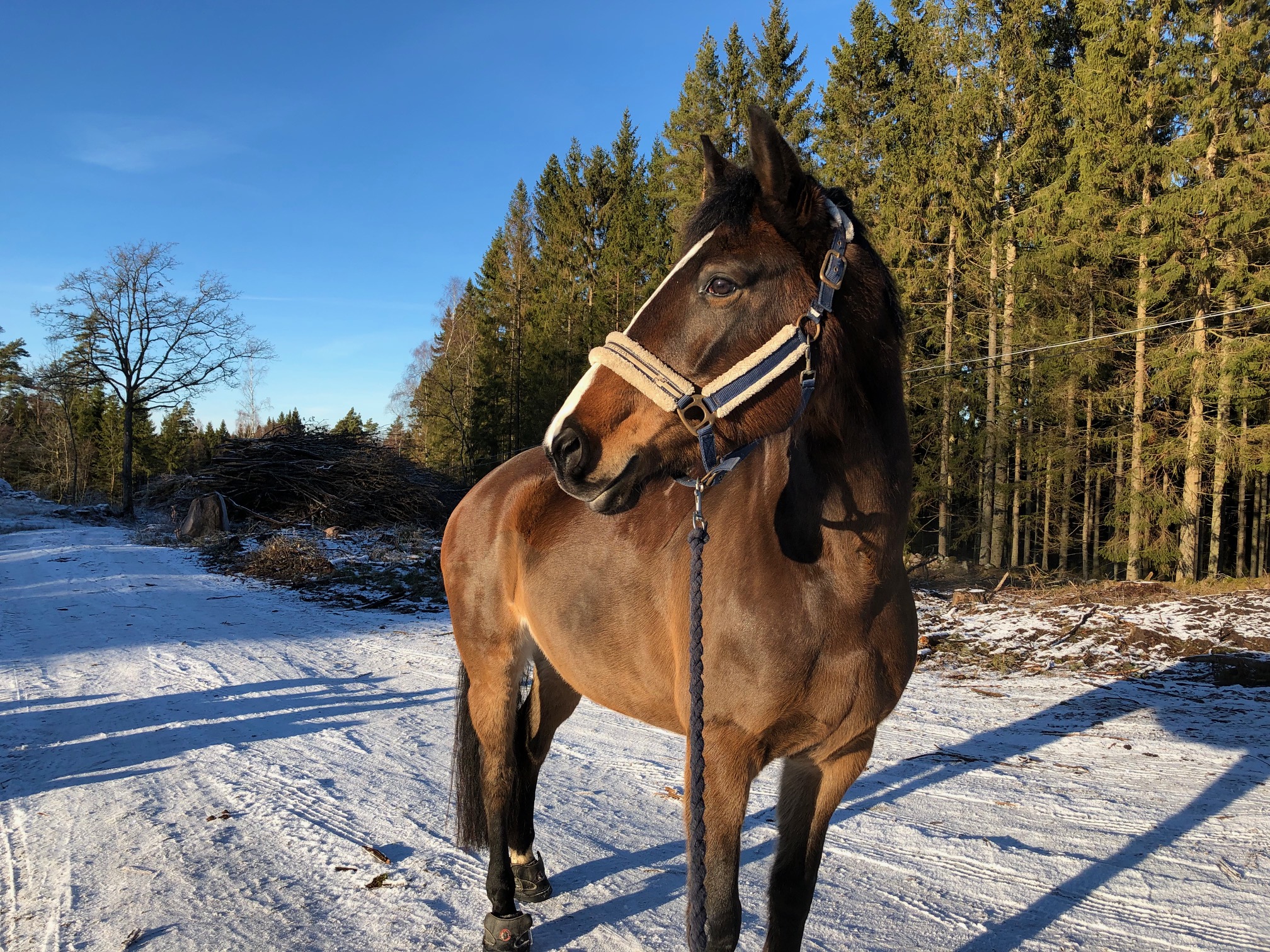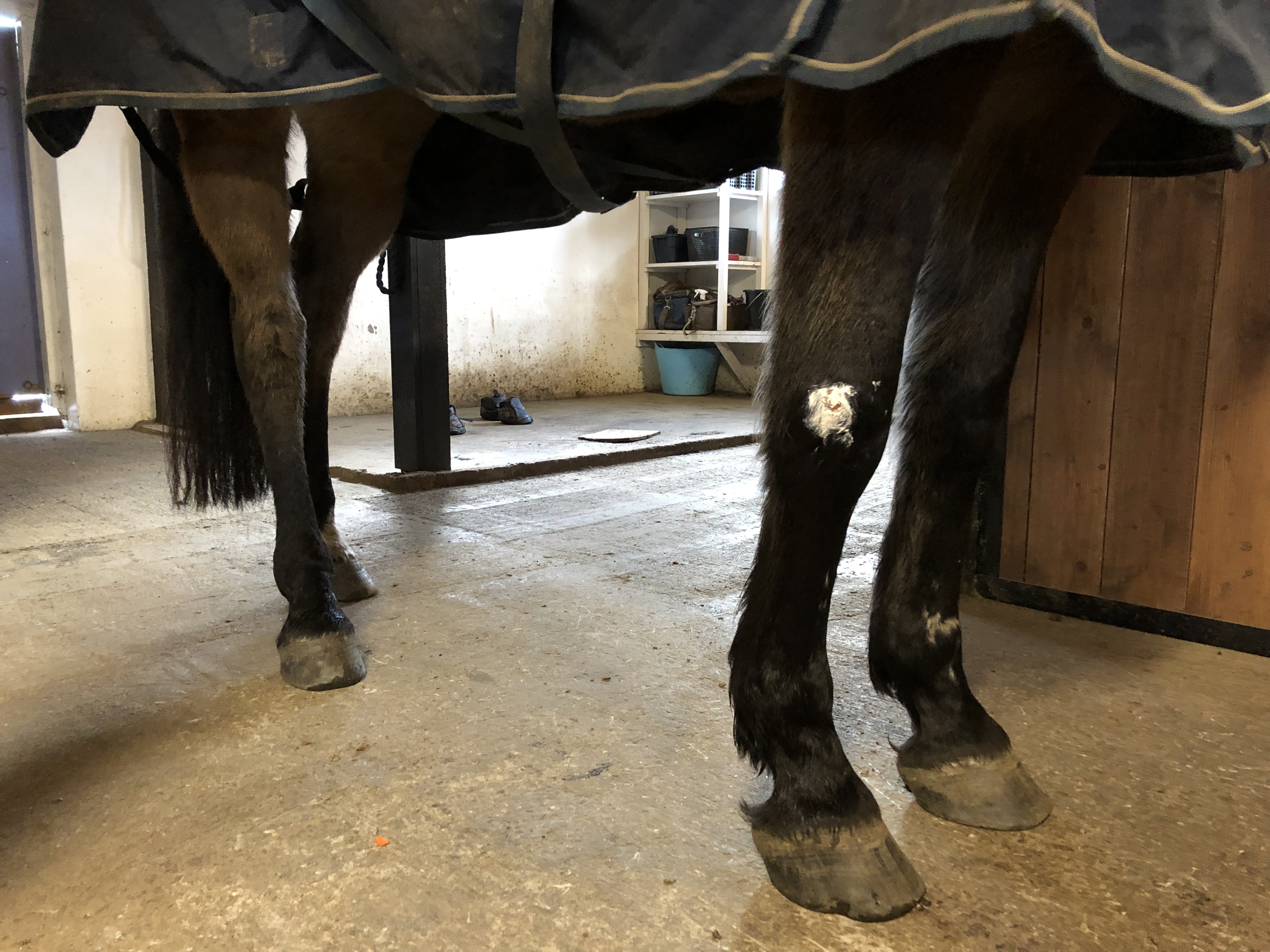 Kaprifol vilar fortfarande, enligt den ursprungliga viloplanen hade jag tänkt sätta igång henne idag/i helgen och benet är på bättringsvägen så det är inte omöjligt att jag skrittar igång henne lite försiktigt nu. Det är fortfarande lite svullet runt såret just och lite ”som runnit ner”, men just den nedre svullnaden minskar vid promenad så jag gissar att den skulle försvinna helt efter en lite längre skrittrunda.