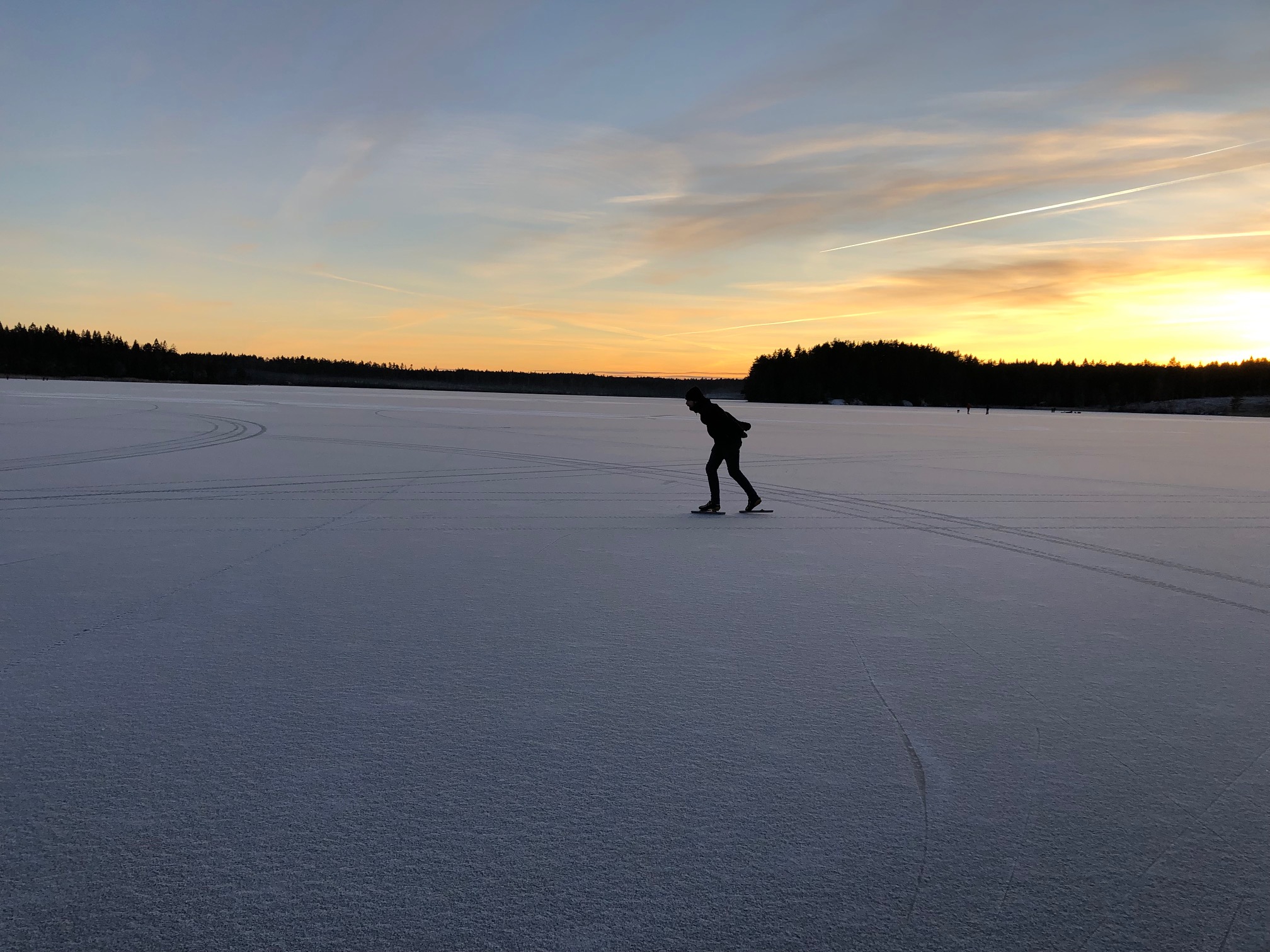 Under eftermiddagen kom Axels föräldrar till oss och vi tog med oss skridskorna och åkte ner till sjön. Det var en otroligt vacker kväll och riktigt bra is!