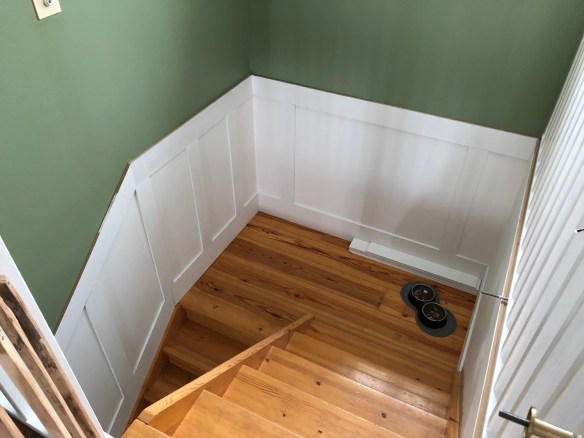 Lite på avsatsen och den övre trappan kvar bara. Sen mer färg, och lister!