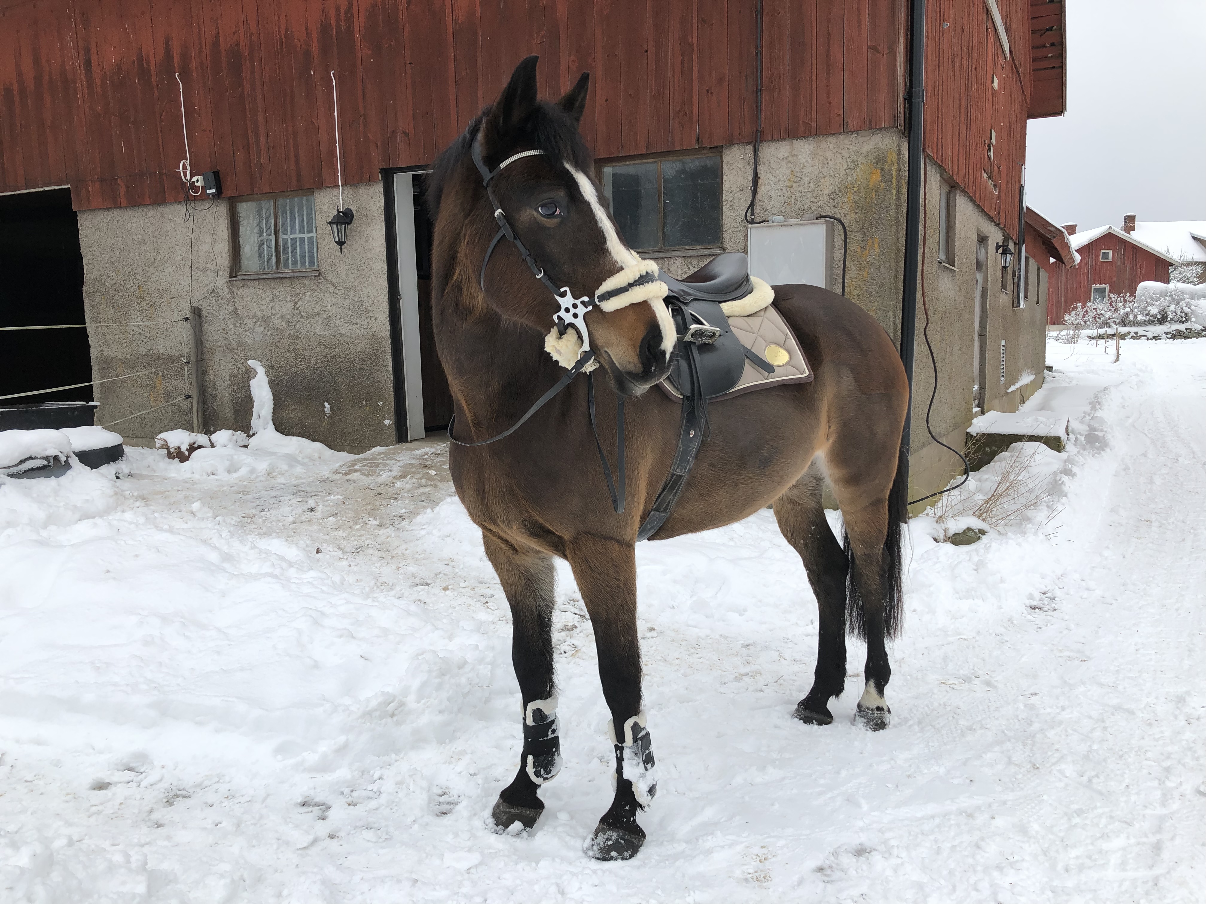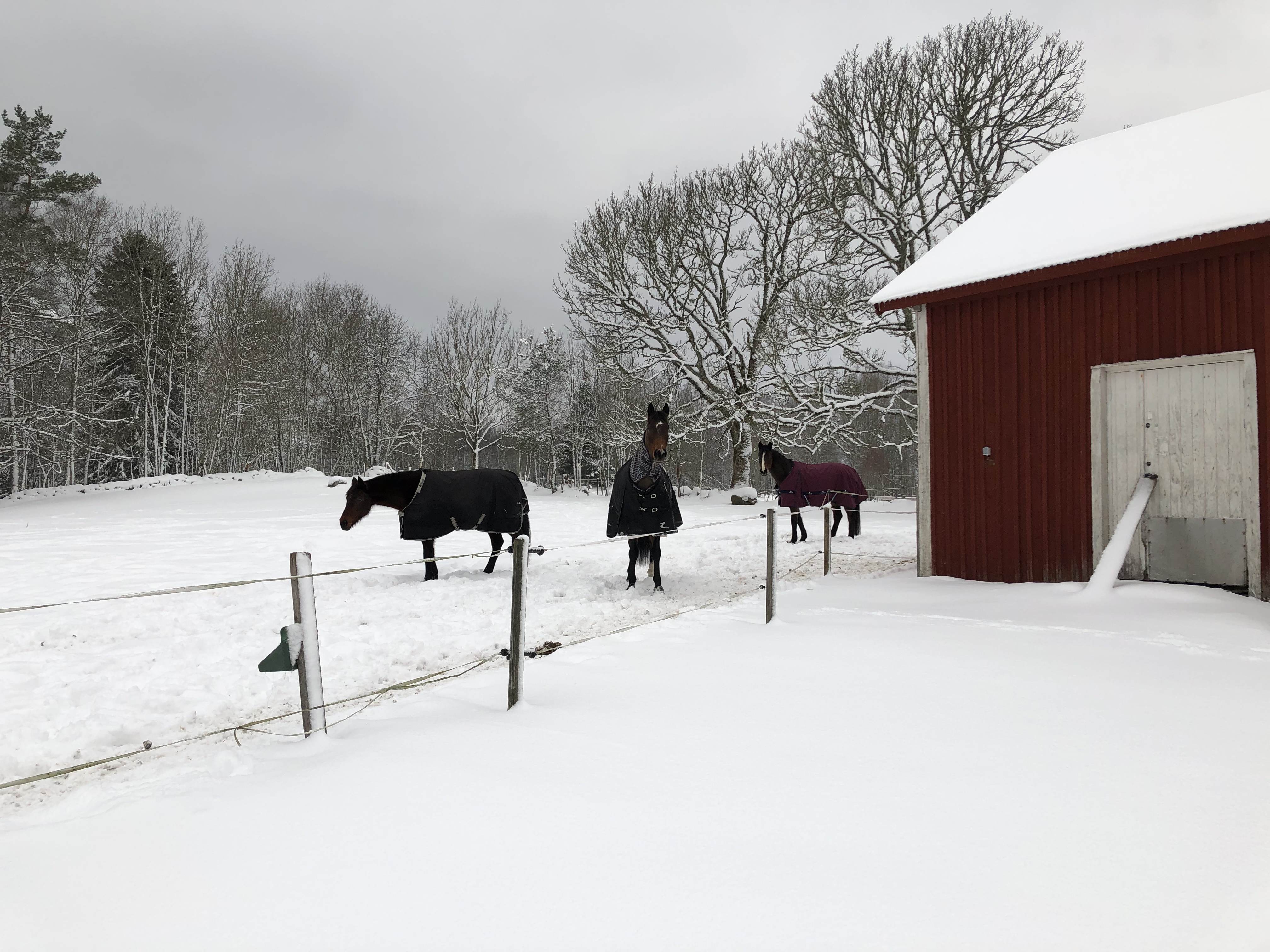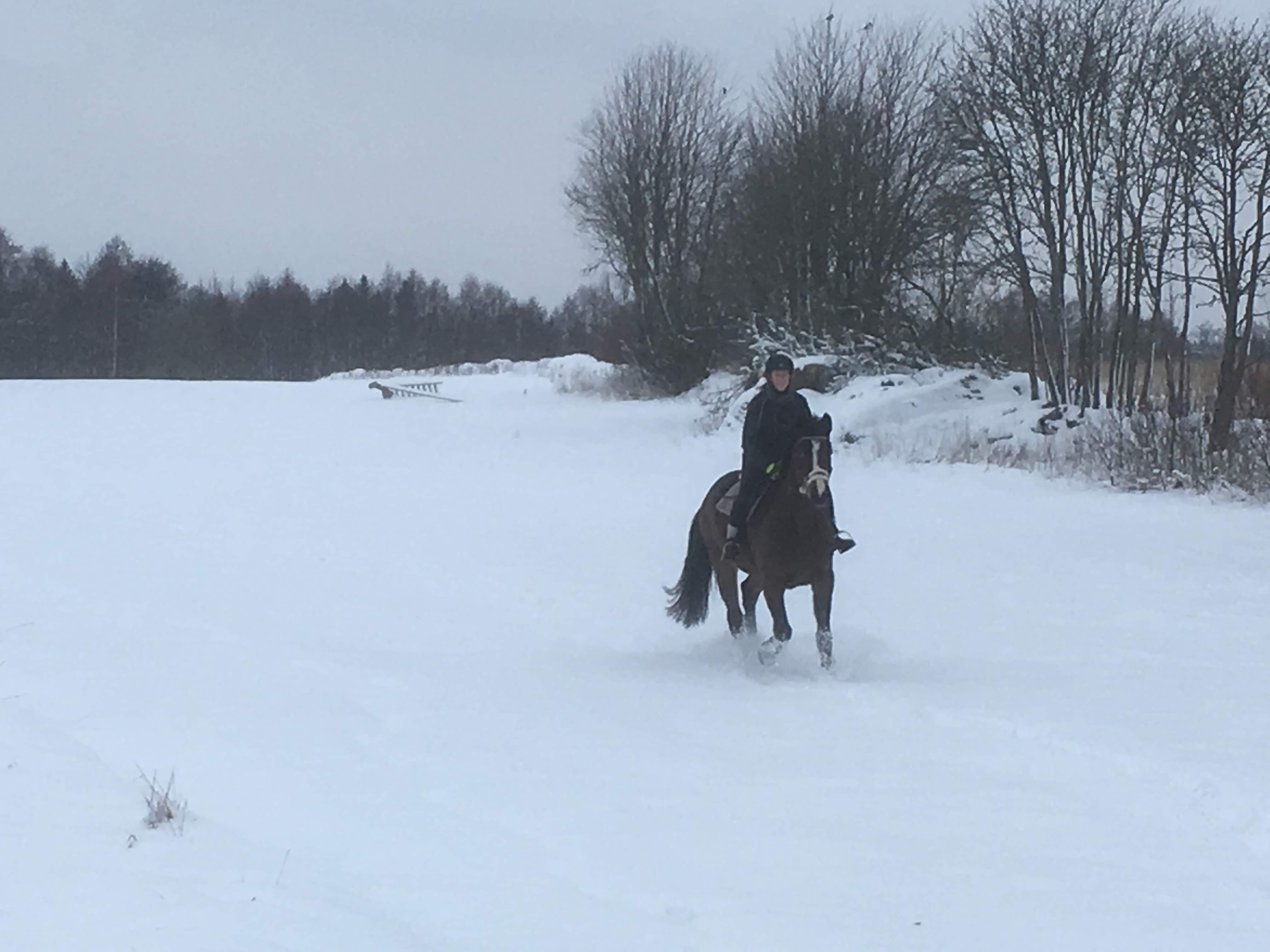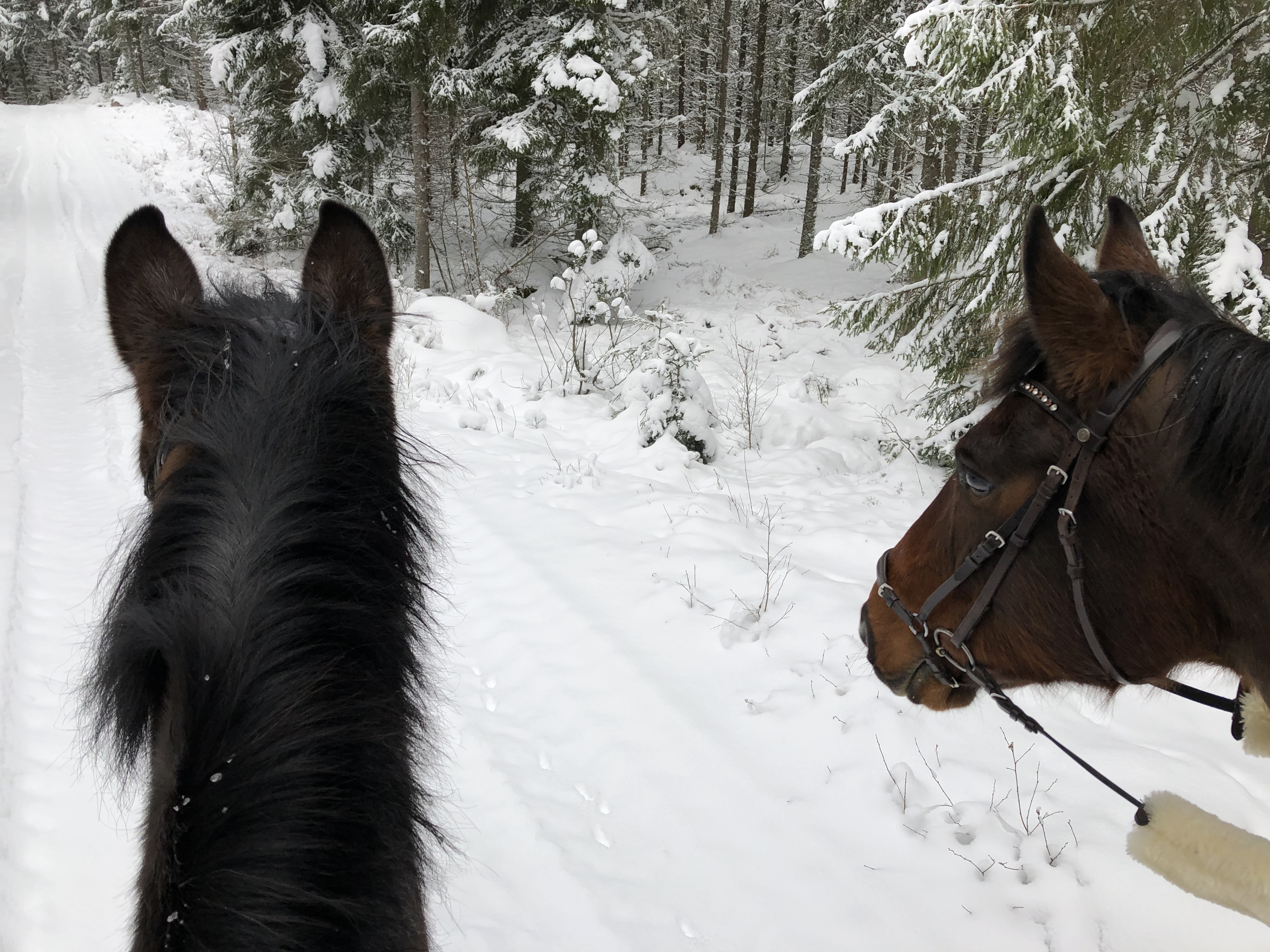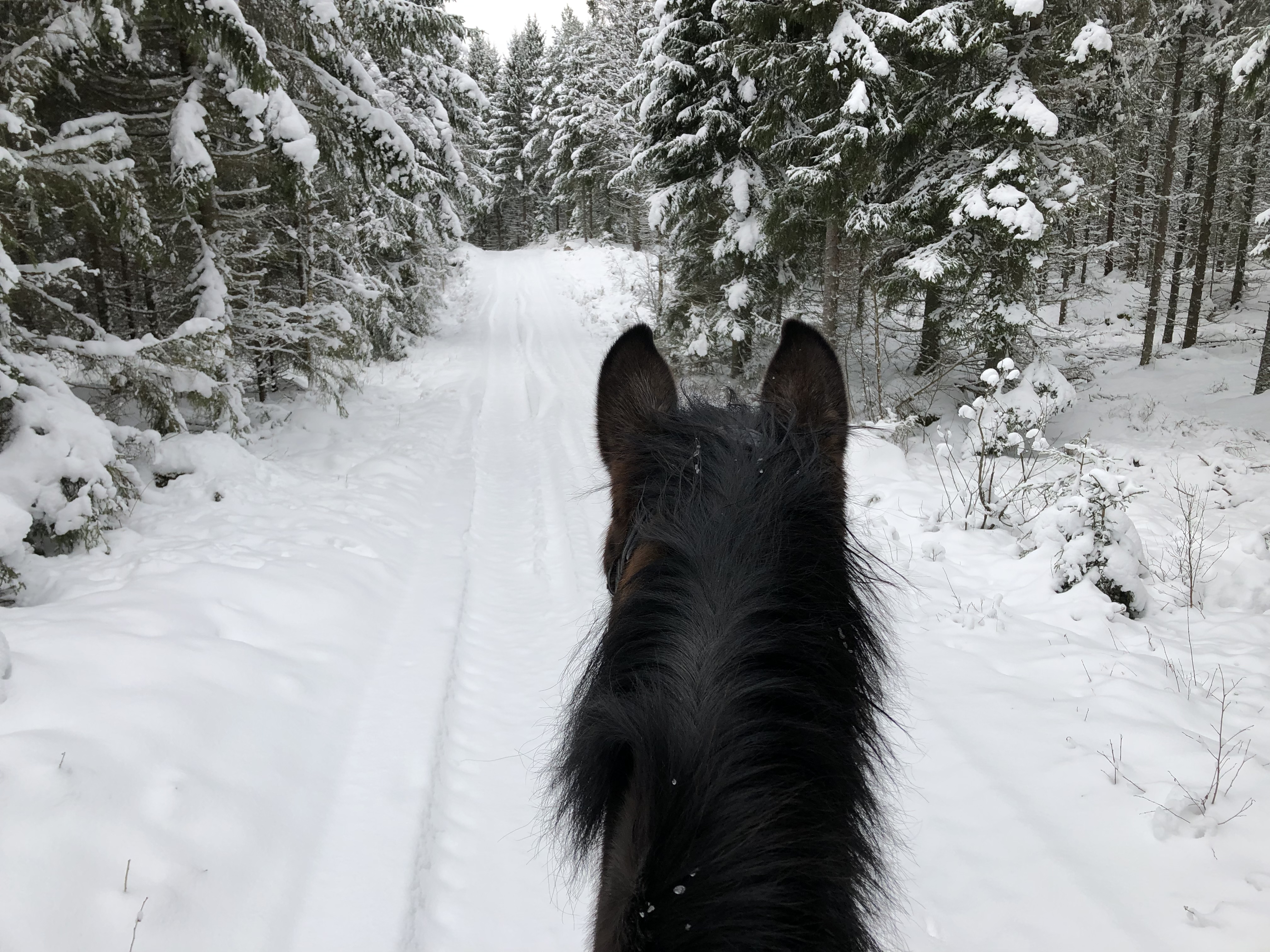 Gårdagen inledde med en söndagsritt ut i skogen med sällskap. Det var alldeles lagom med snö inne i skogen så det blev en hel del trav. Nöjda hästar!