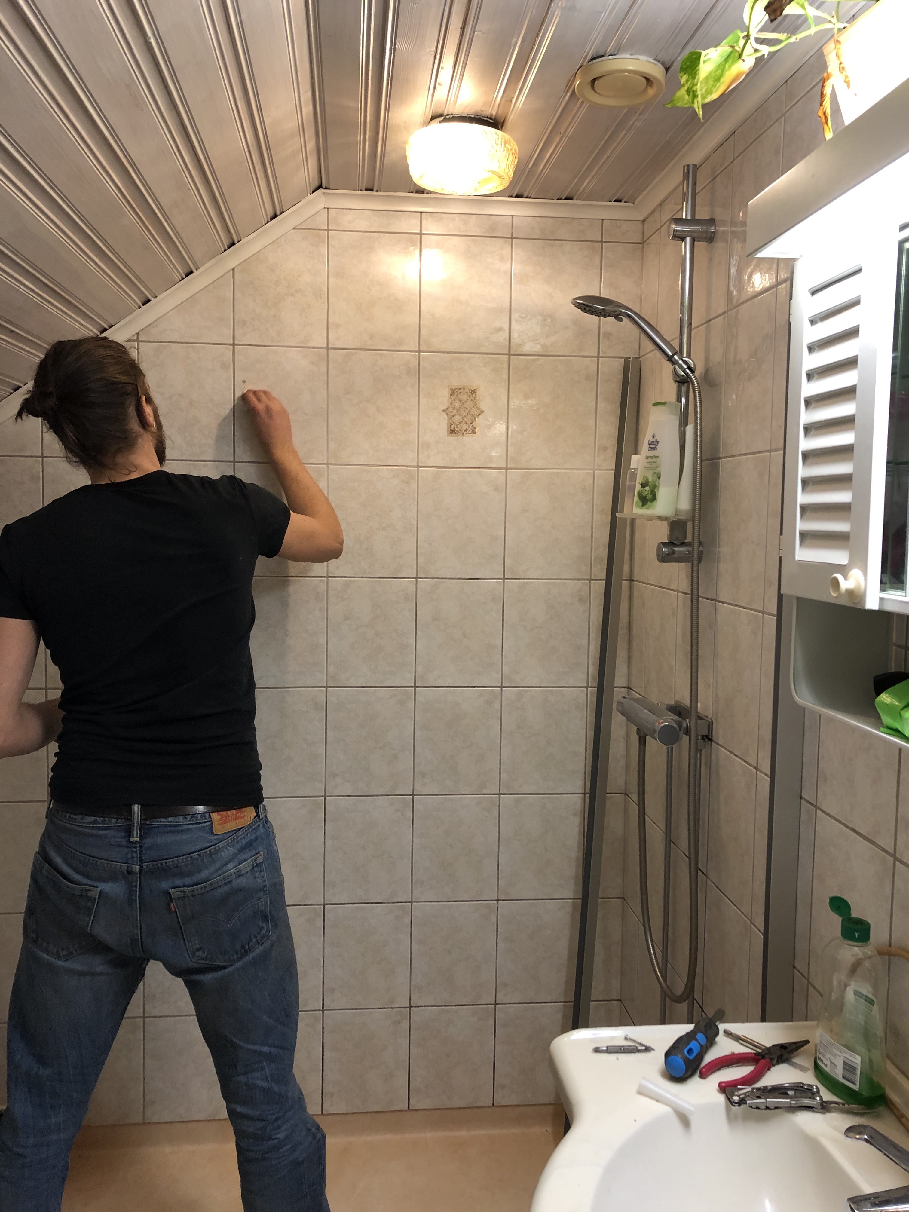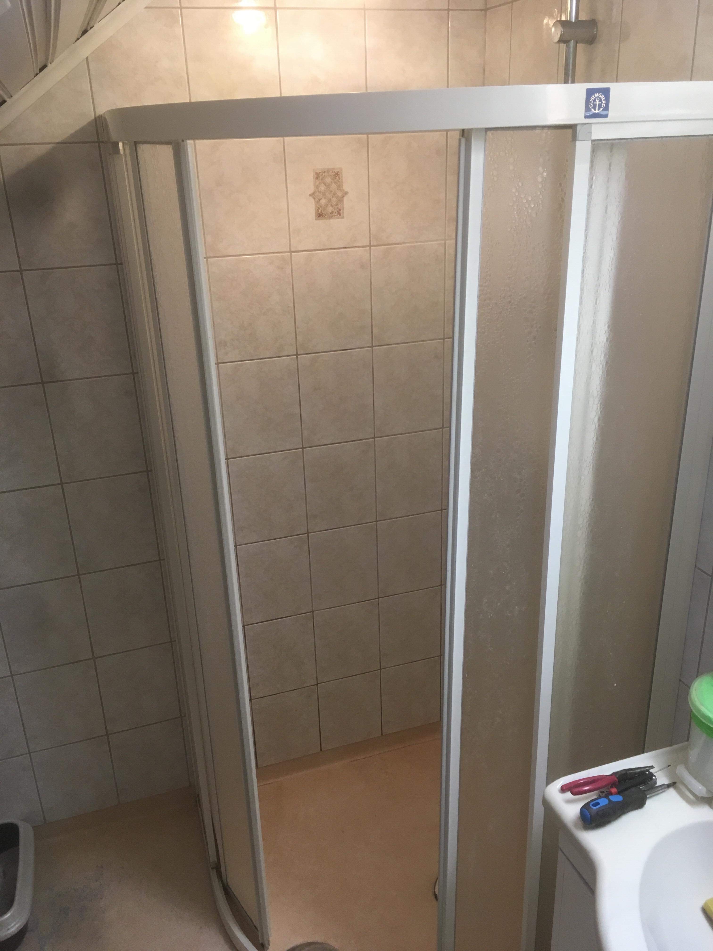Det var ju drygt ett år sen vi fräschade upp badrummet med lite färg i taket och på listorna. Redan då sa vi också att vi kommer vilja byta ut duschen och handfats-möblerna där inne. Duschen var långt bortom räddning på rengöringsplanet och allmänt väldigt ofräsch och ful. Men vi har inte tagit tag i det, förrän nu! För ett tag sen hittade vi en passande dusch på blocket (oanvänd) och slog till. Den har legat här hemma ouppackad sen dess men igår tog vi tag i saken och rev ut den gamla duschen (uäääk!) och satte in den nya.