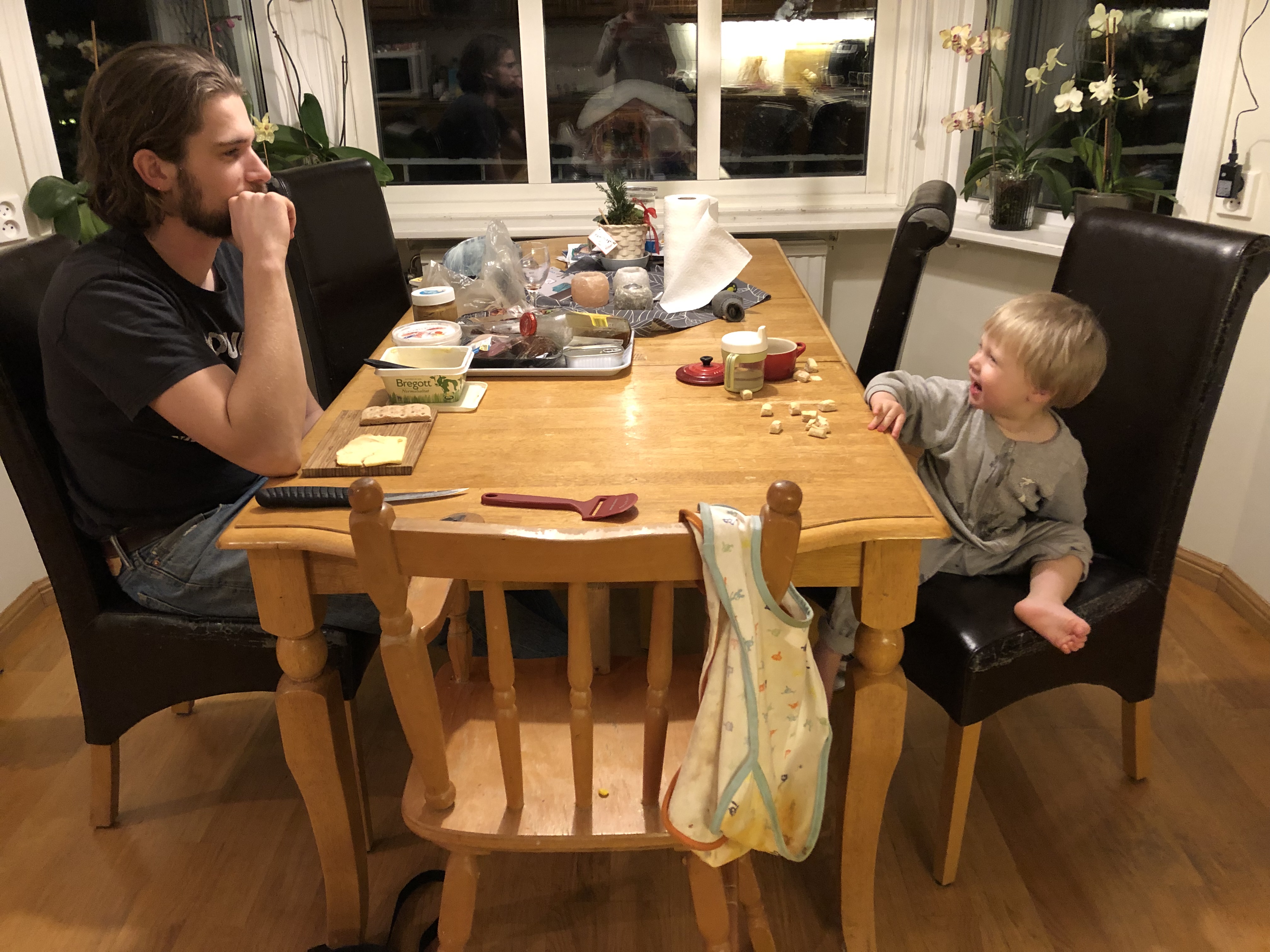 Resten av kvällen innehöll inomhuslek, middag där Loke glufsade i sig rådjursryggbiff och lite senare en kvällsmacka.