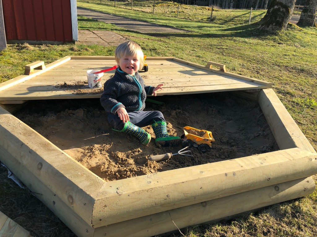 Loke fick leka lite själv medan sköterskan studerade honom och kom ju snart fram till att han är duktig både motoriskt, med sitt kroppsspråk och sitt språk. Han hittade såklart en traktor (”TRAK-TOR!”) och kopplade snabbt och enkelt på det tillhörande släpet. Just ordet traktor imponerade lite på sköterskan då det innehåller flera lite ”avancerade ljud/bokstäver”. Att han kan 8-10 ord fick jag svara på att han kan, utan bekymmer och han babblade ju på en del efter en stund så det hörde hon ju att han kunde också. Jag sa även att han förstår mycket mer än vad han kan prata och hon frågade specifikt om jag kunde be honom hämta saker utan att peka på dem. Vilket jag kan, tidigare under dagen satt vi i vardagsrummet och lekte till exempel, och Loke letade efter sin ena traktor (såklart). Då kunde jag berätta för honom att den låg i badrummet, vid toaletten, där vi byter blöja och då sprang han dit och hämtade den. Han förstår ju dessutom både svenska och holländska, och säger några ord på vardera språk. De senaste orden han har lärt sig som jag kommer att tänka på nu är no-ne = måne, daj = bajs och så säger han nåt som är ganska likt sol, som betyder just det.