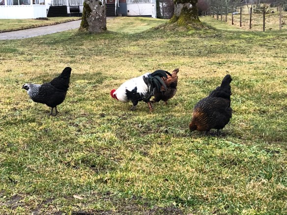 I söndags eftermiddag åkte mamma hem så idag var min och Lokes första ensamma dag nu medan Axel är i Toronto. Vi inledde dagen starkt med uppstigning klockan sju och frukost till oss innan vi gick ut för att mata fåren. Hönsen fick komma ut också och verkade inte skrämmas av regnet som hängde i luften.