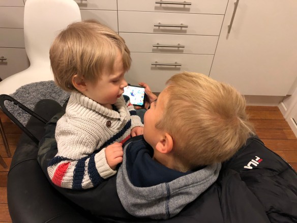 Sofia hade med sig sina barn också och Loke blev genast förtjust i William och han verkade gilla Loke också. De lekte lite tillsammans och Loke ville gärna sitta i knäet när vi fikade lite.
