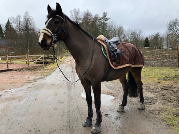Det var fortfarande plusgrader och mjukt ute så jag red en runda på 6-7 km och det blev en del galopp. Tänkte det var lika bra att passa på nu när det ska bli lite minusgrader igen. Kaprifol var pigg och glad.