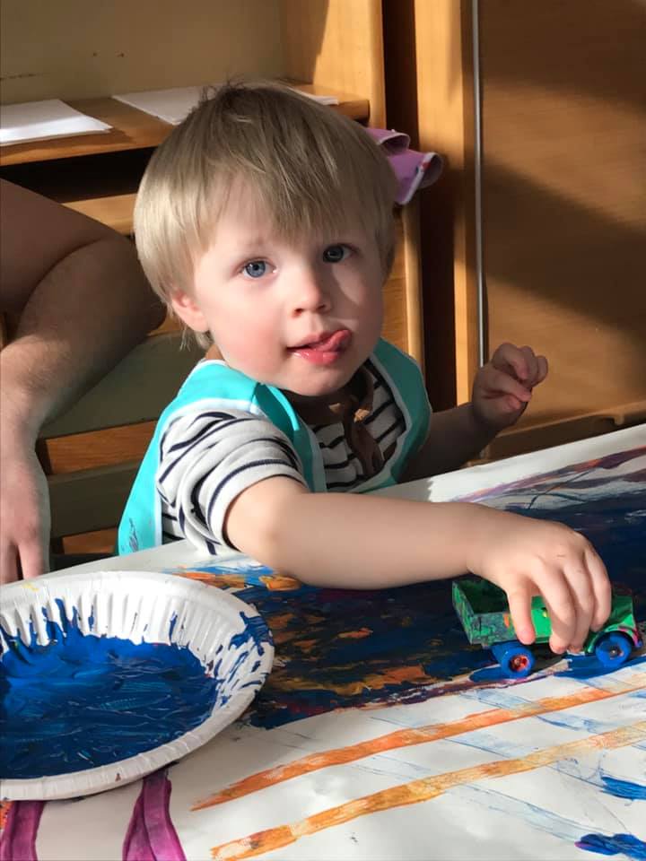 Loke och Axel hade haft en bra dag. Under förmiddagen var de som sagt på öppna förskolan i Vårgårda och lekte med färg bland annat. Axel hade inga bilder att bjuda på men Loke fastnade på en bild av pedagogerna så jag stal den.