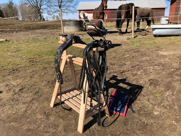 Medan Loke sov middag i vagnen fick Kaprifol bli av med lite vinterpäls och så blev det ett lättare tömkörningspass.