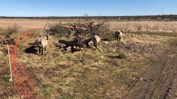 Vi inledde med att göra en liten hage till tackorna bakom deras hus. Jag tänkte att lite sol och några grässtrån + rörelse ska locka fram de där lammen! Återstår väl att se i natt om det har gett nåt…