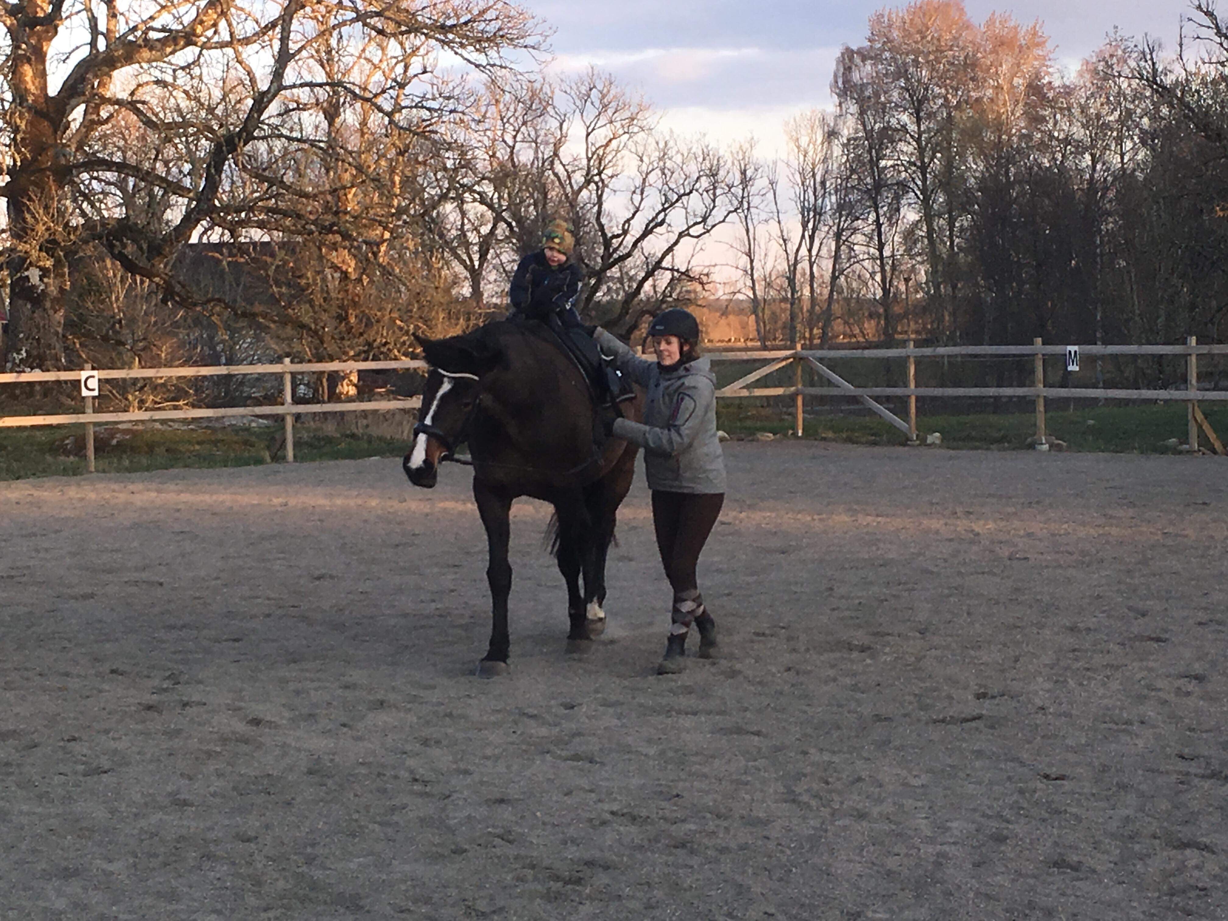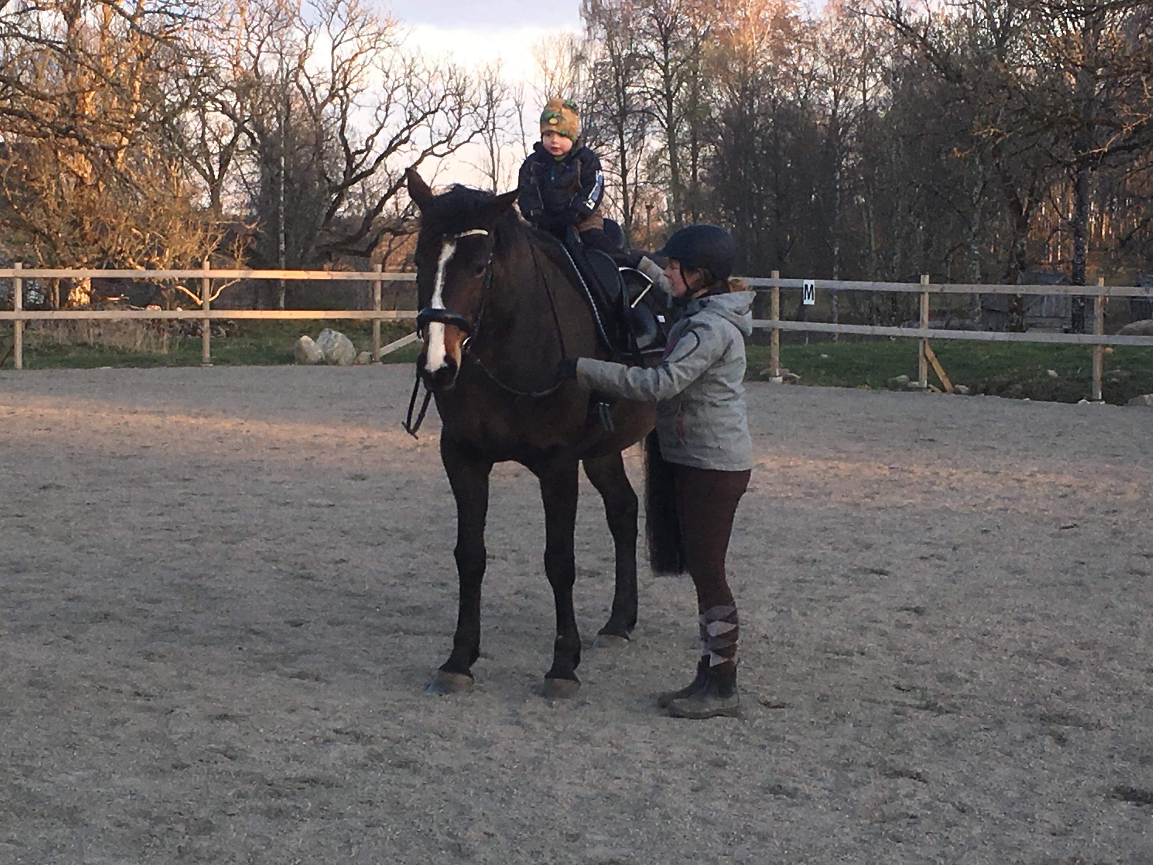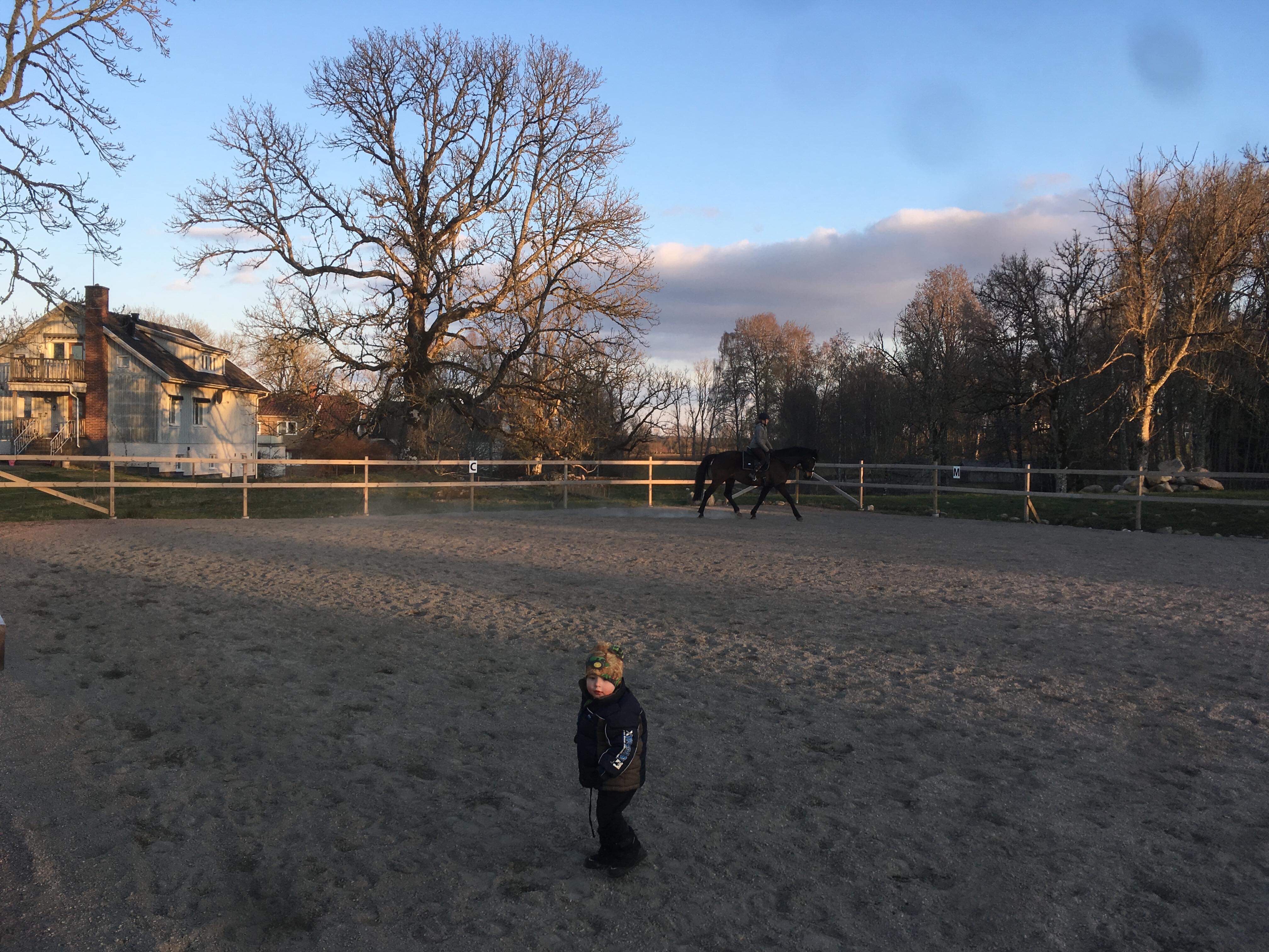När vi var klara dök mamma, Peter och hans barn upp på ett kort besök. Vi träffade dem ju igår hos Enbergs, men de ville se våra söta lamm (såklart) och rida lite, vilket de fick. Vi fikade först och sen fick Kaprifol sadel på sig. Inga bilder blev det här dock, men både Ella, Mio och Loke red några varv på ridbanan. Med lammig utsikt!