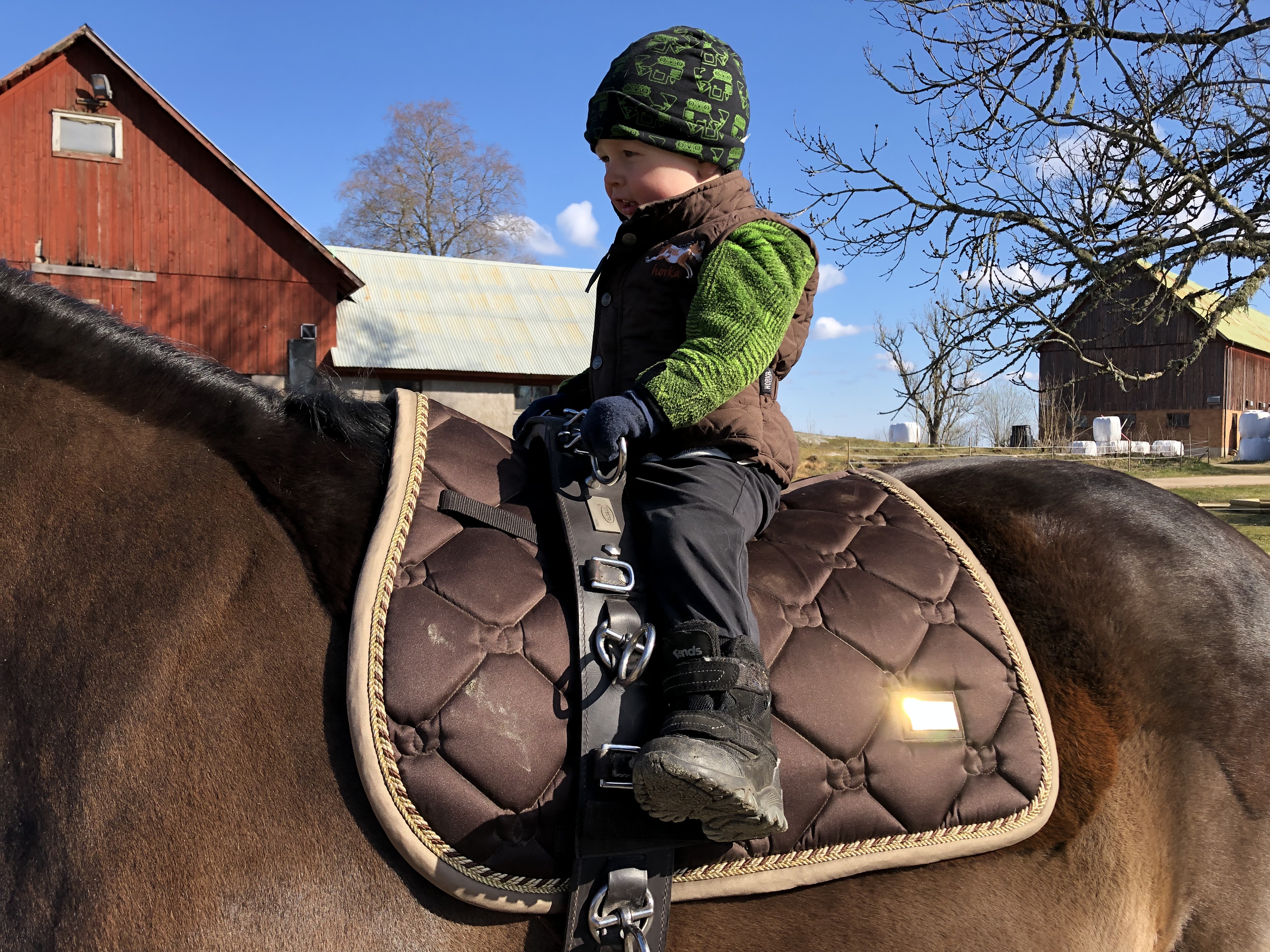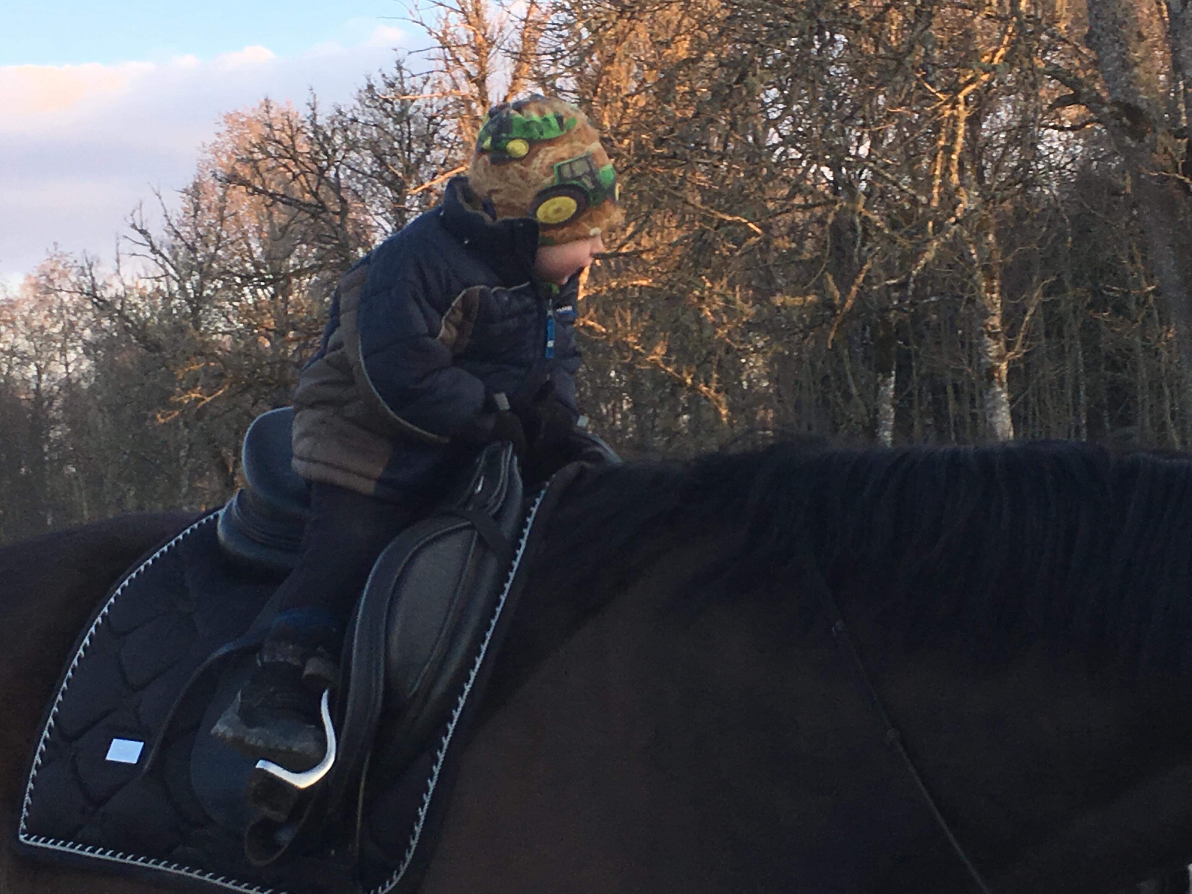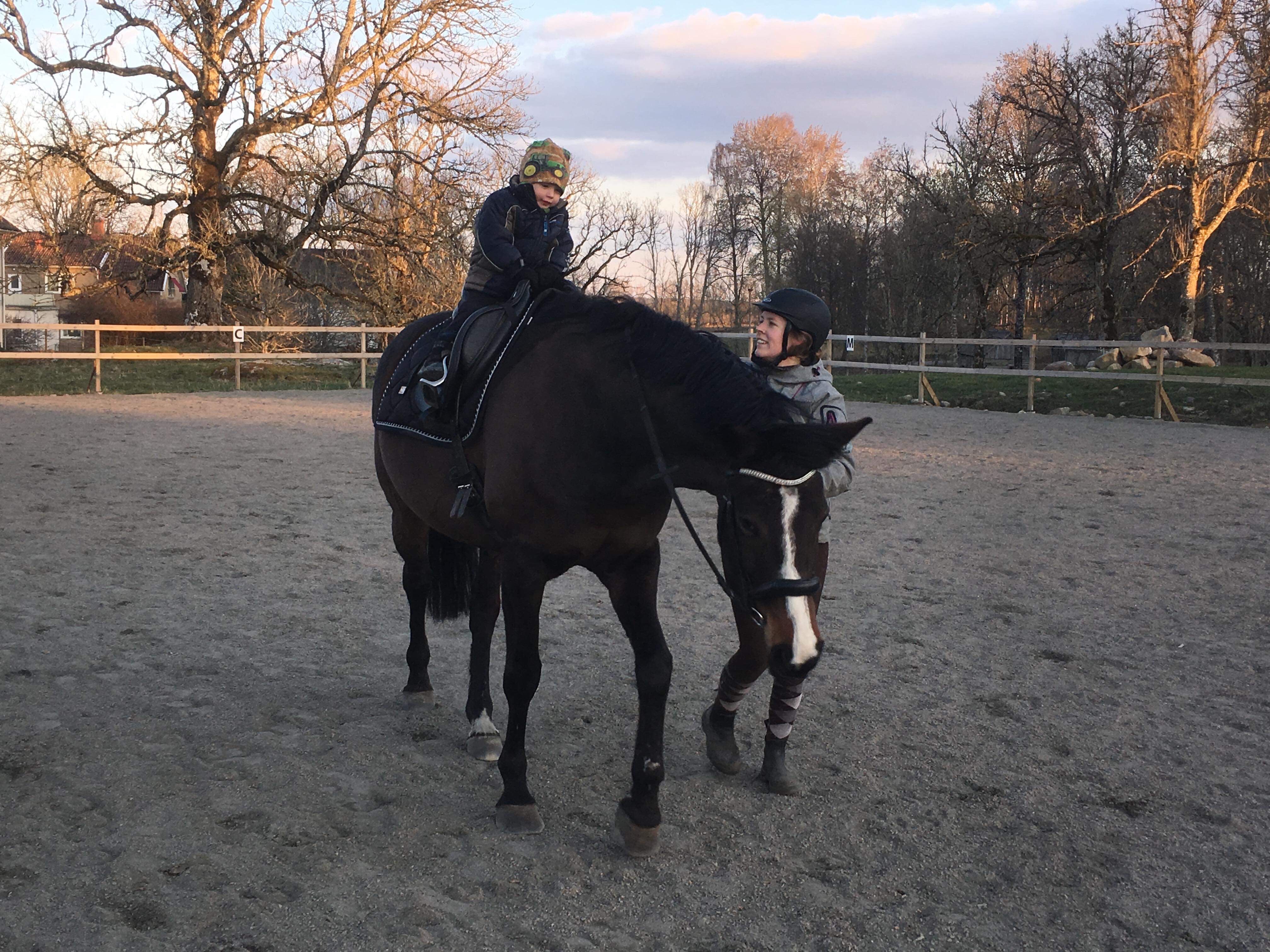 När vi var klara dök mamma, Peter och hans barn upp på ett kort besök. Vi träffade dem ju igår hos Enbergs, men de ville se våra söta lamm (såklart) och rida lite, vilket de fick. Vi fikade först och sen fick Kaprifol sadel på sig. Inga bilder blev det här dock, men både Ella, Mio och Loke red några varv på ridbanan. Med lammig utsikt!