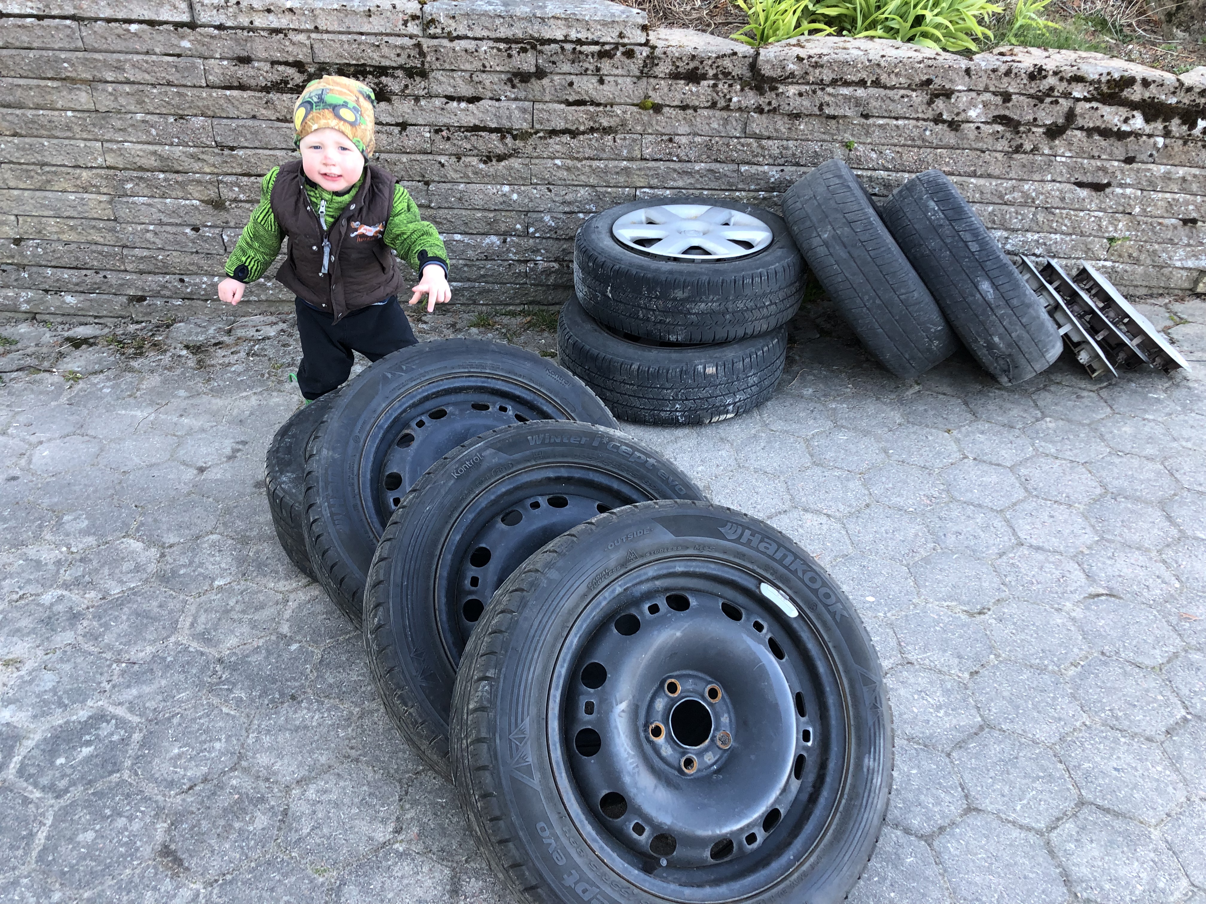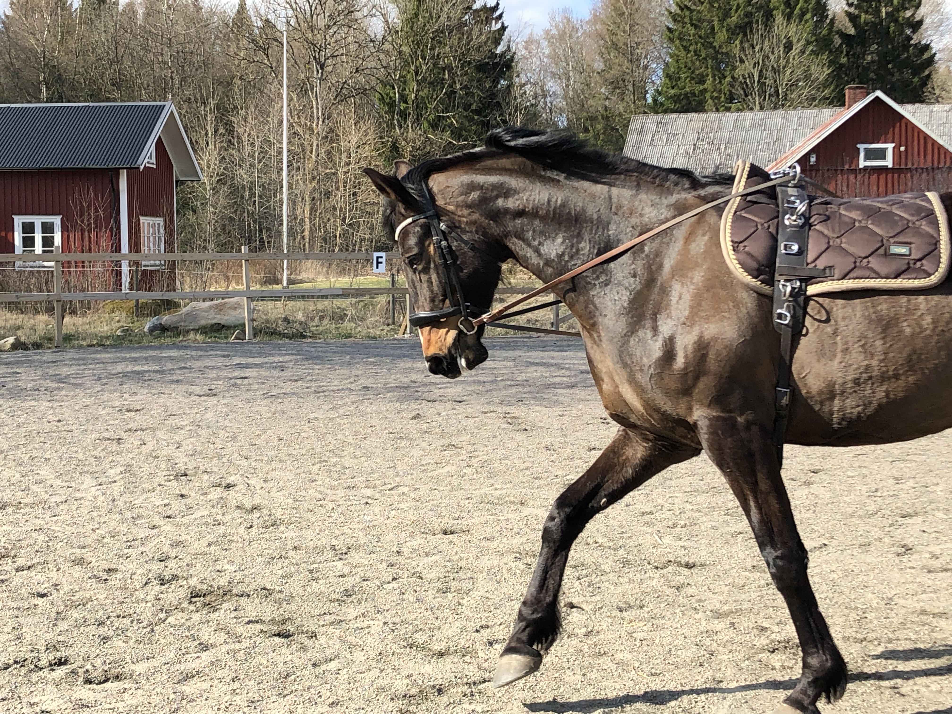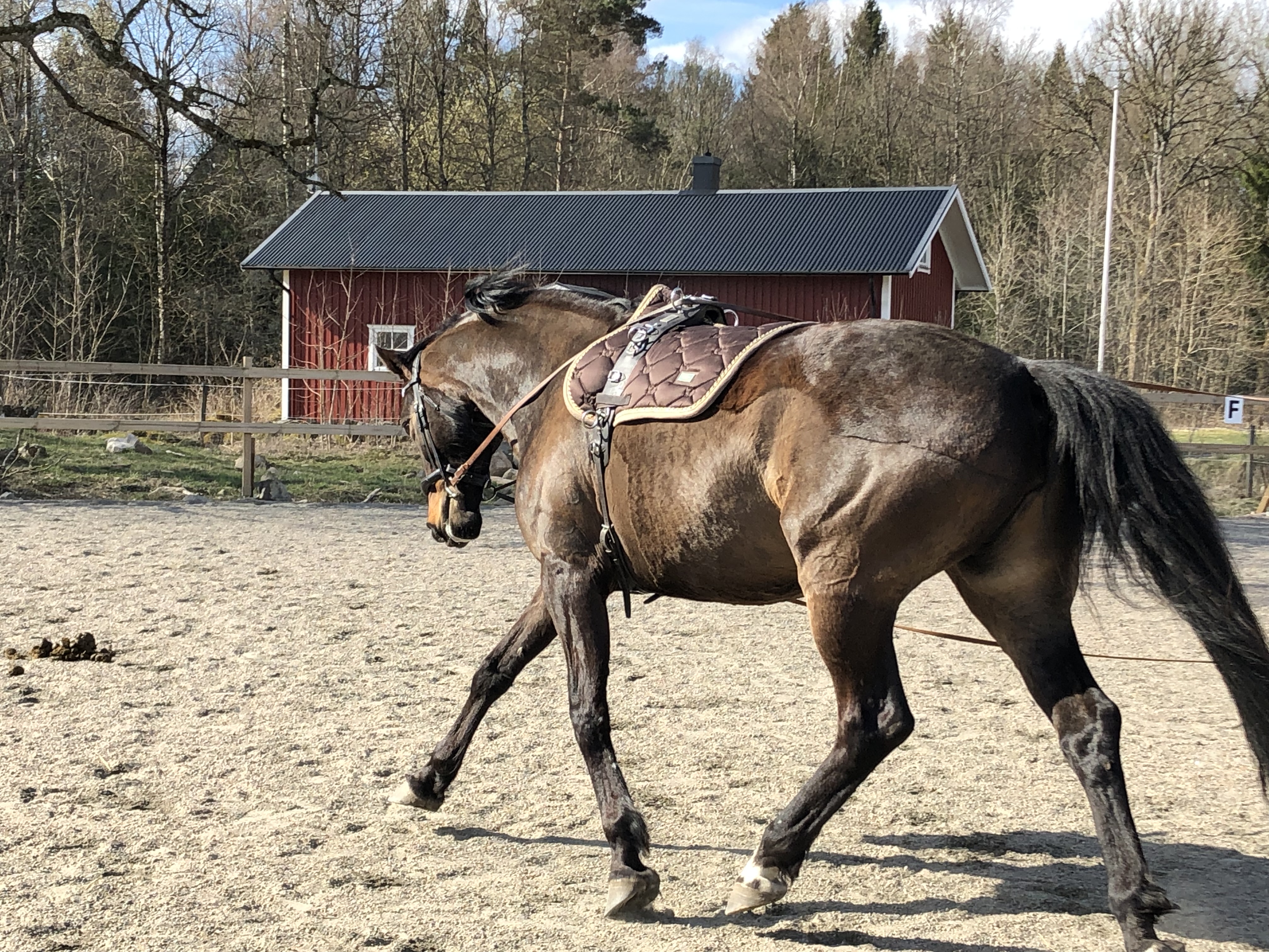 Vi inledde dagen med att ta bort fårnätet runt gårdsplanen där fåren gått och så ville hästarna ha en ny höbal. När traktorn ändå var framme körde Axel ett par vändor på grusvägen och skrapade den med plogen. Den värsta ”bullen” i mitten av vägen försvann och det blev några hålor färre.