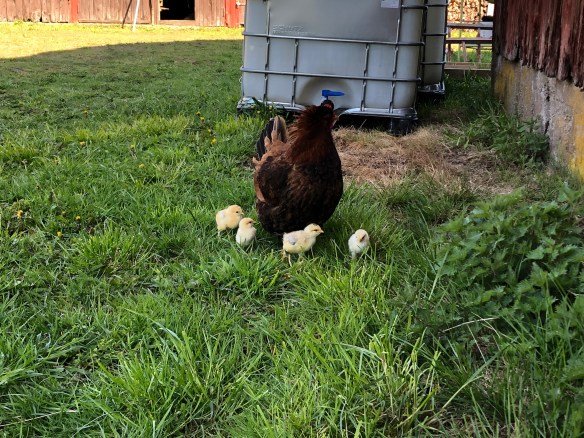 Sicken solig och härlig dag det blev igår! Brons och kycklingarna fick komma ut ur sin box och gillade friheten.
