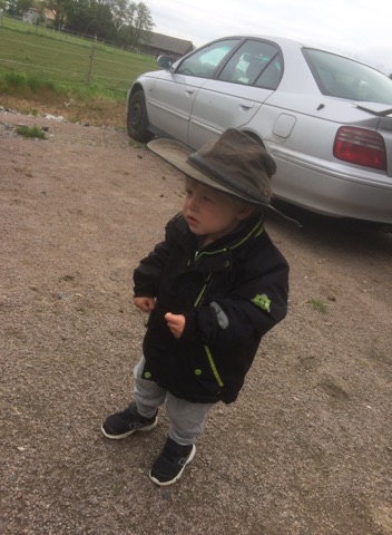 Lite regn fick vi på oss, men vi överlevde! Och Loke skrattade högt när mormor fick ta i när det gick uppför, hehe.
