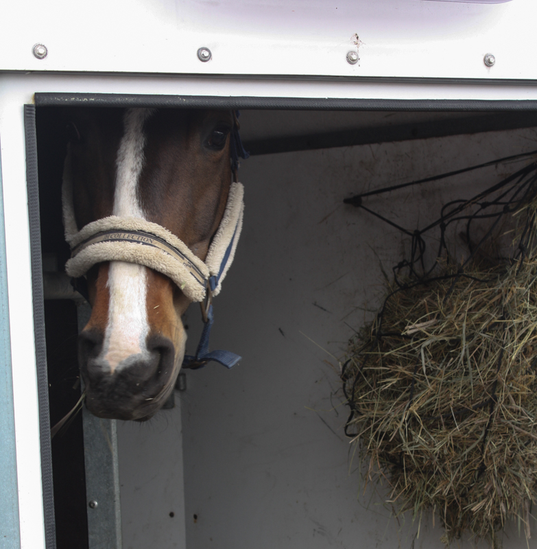 När jag skrittat av Kaprifol ställde jag henne i en dikeskant och lät henne mumsa gräs och så kikade vi på vår nästa lagryttare som kom nio ryttare senare. Hon fick tyvärr också fyra fel så där rök våra chanser med laget så vi behövde inte vänta på omhoppning utan Kaprifol fick hoppa in i släpet igen. Hon gick rakt in utan att fundera två gånger på saken! Så fick hon stå där och vila lite medan vi tittade på sista lagryttaren.