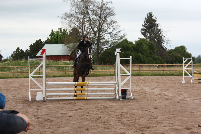 Efter ”mina framträdanden” var det dags att åka till Gäsene och årets första tävling på anläggningen där. Det var unghästhoppning och klasserna 100, 110, 120 och 130 avverkades i rask takt så det gick smidigt. Vi byggde även om banan till nästa veckas omgång och då fick vår lilla gås komma in på banan!
