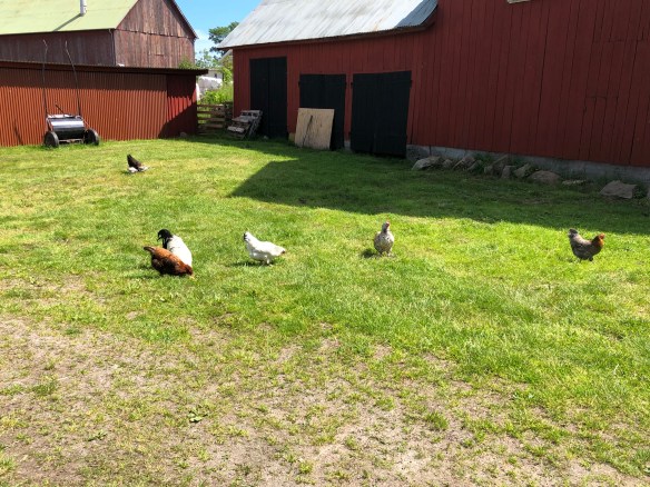 Hönsen fick äntligen komma ut igår efter ett par dagar instängda så de nya kunde landa lite.