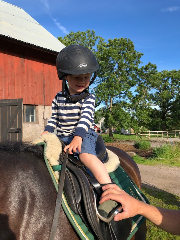 När vi var tillbaka vid stallet fick Loke sitta på Kaprifol lite.