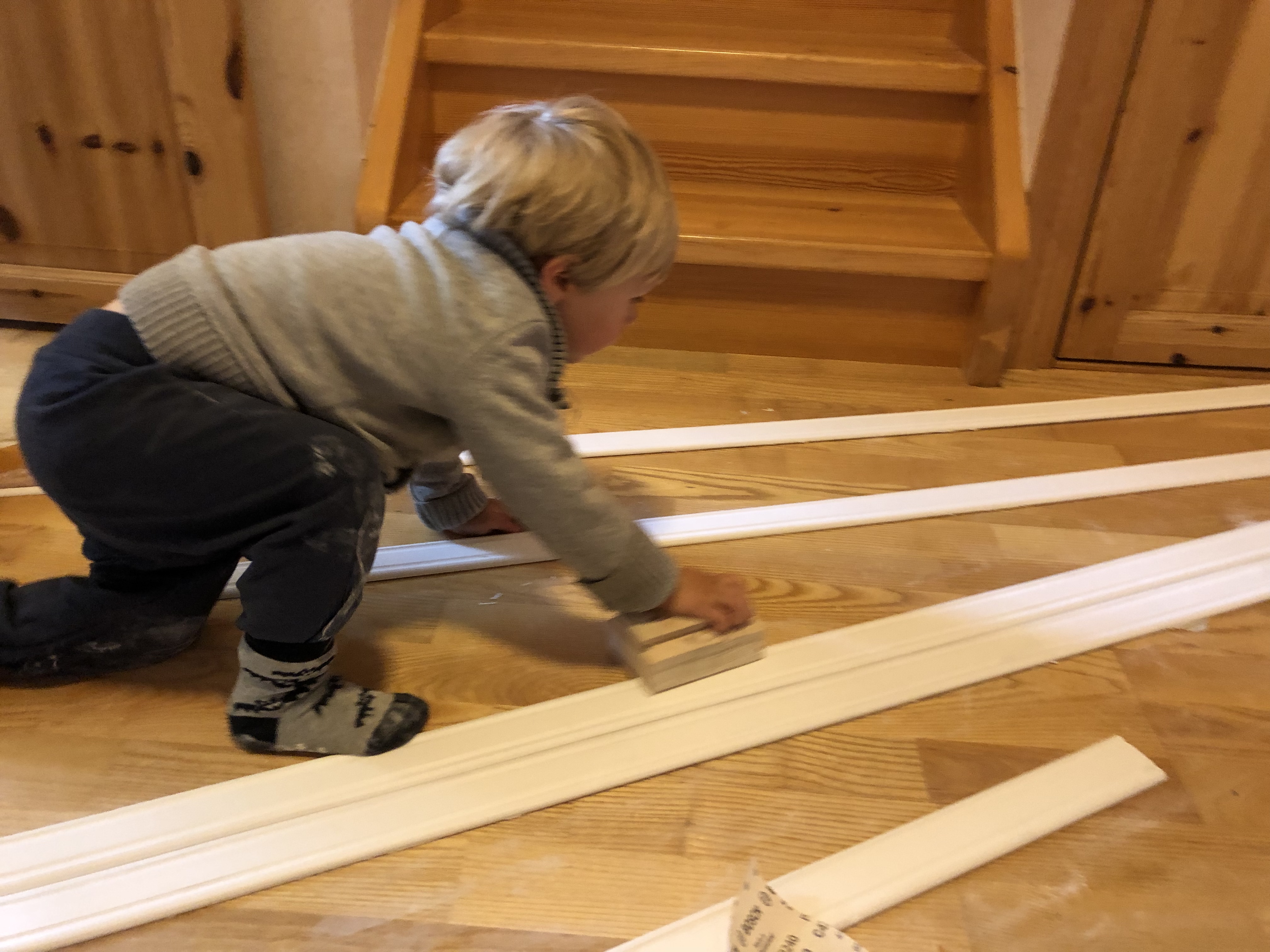Idag har vi varit ganska slöa alla tre. Axel är/har varit lite småsjuk och även om han typ är frisk så har han varit rätt trött, och så har även vi andra varit. Så halva dagen gjorde vi mest ingenting och sen ryckte vi upp oss lite och slipade lite lister.