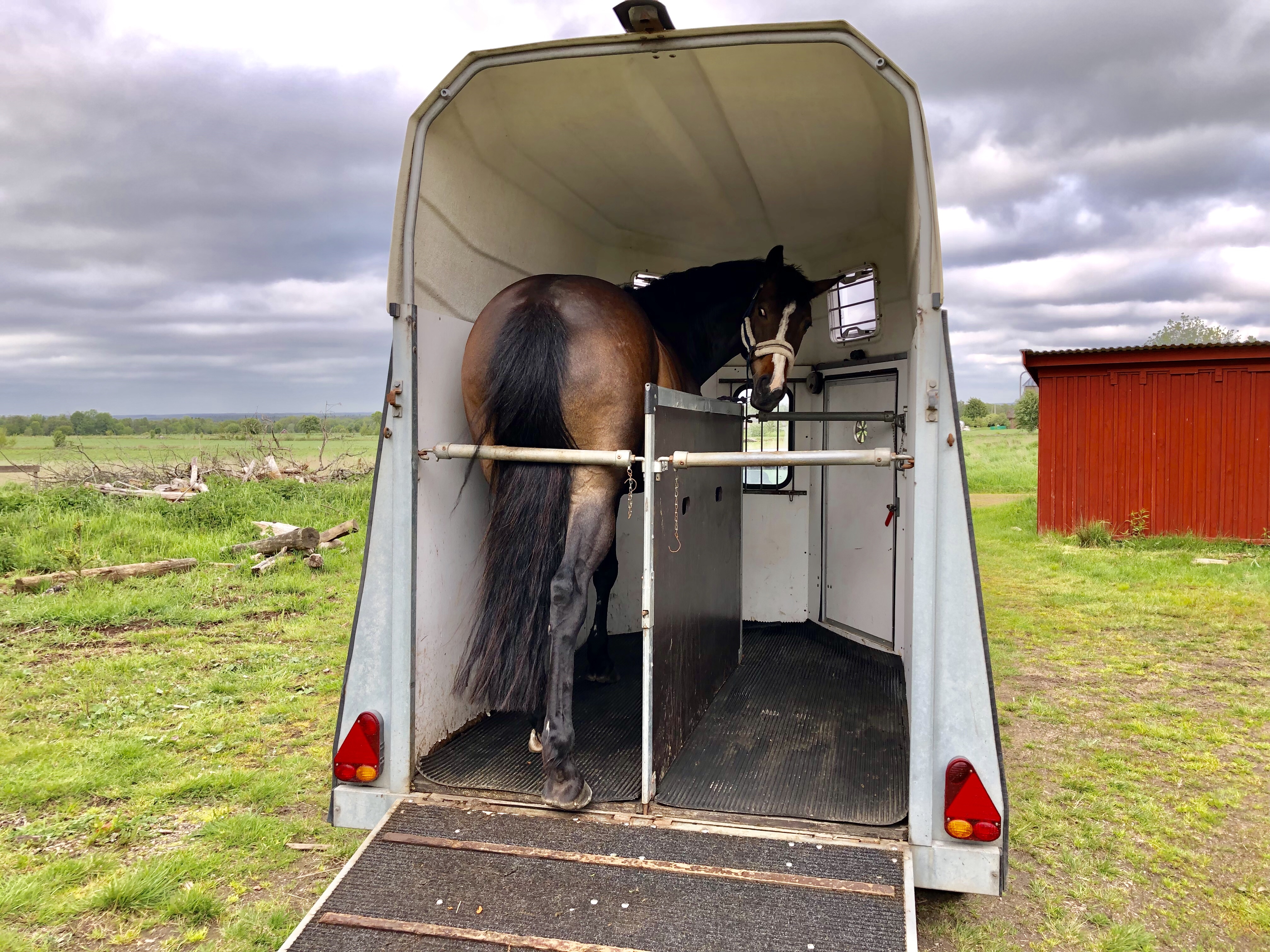 Sen tog vi en promenad, jag till häst då. Uppladdningen inför morgondagens tävling blev en skrittrunda i skogen och sen skuttade jag över ett hinder ett par gånger. Kändes fint! Och sen stoppade jag in hästen i släpet också så det är också klart för i morgon.