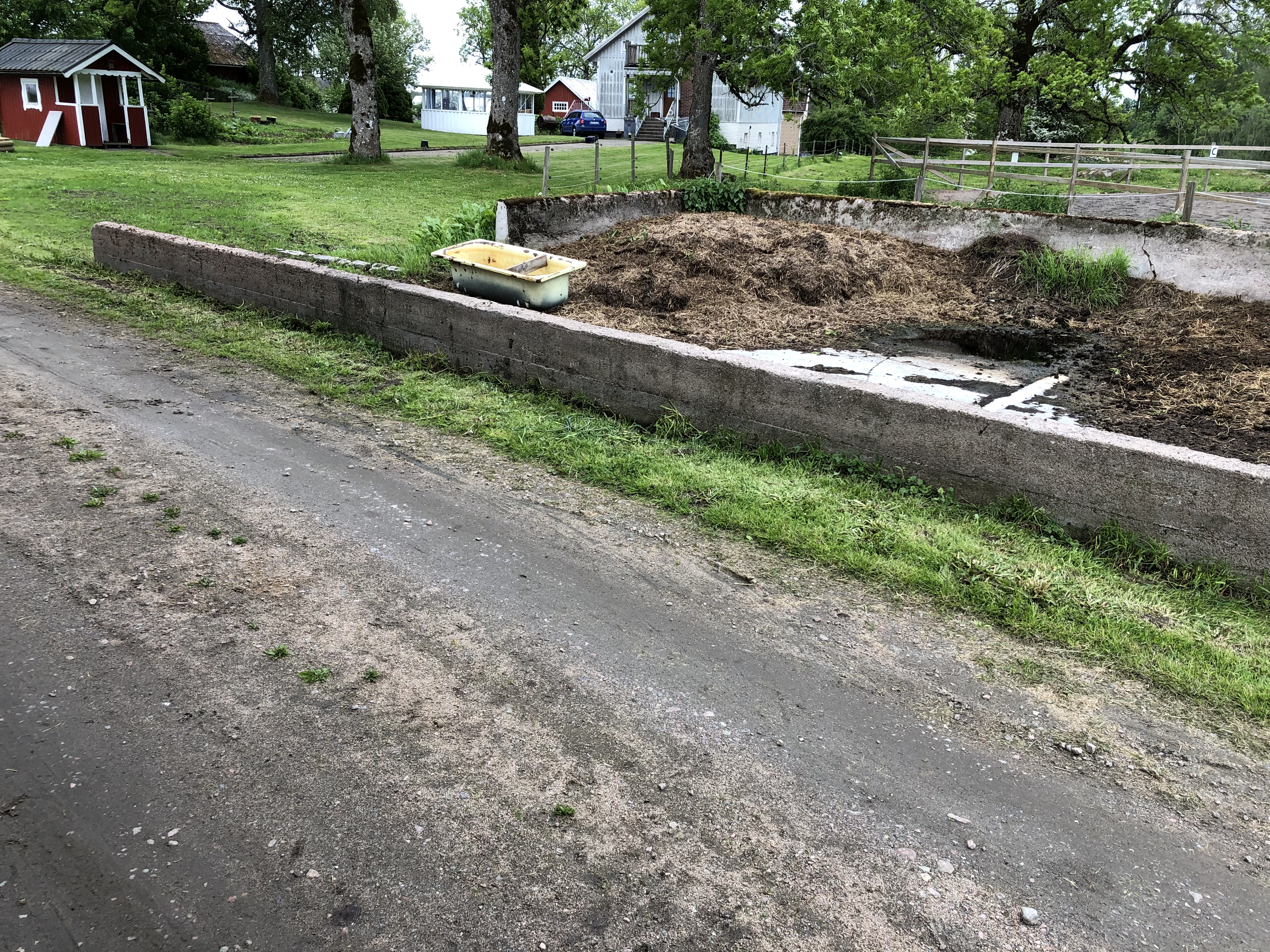 Och eftersom vi hade högtryckstvätten framme kunde vi inte låta bli att spola rent betongkanten på gödselstacken. Bort med mossan!