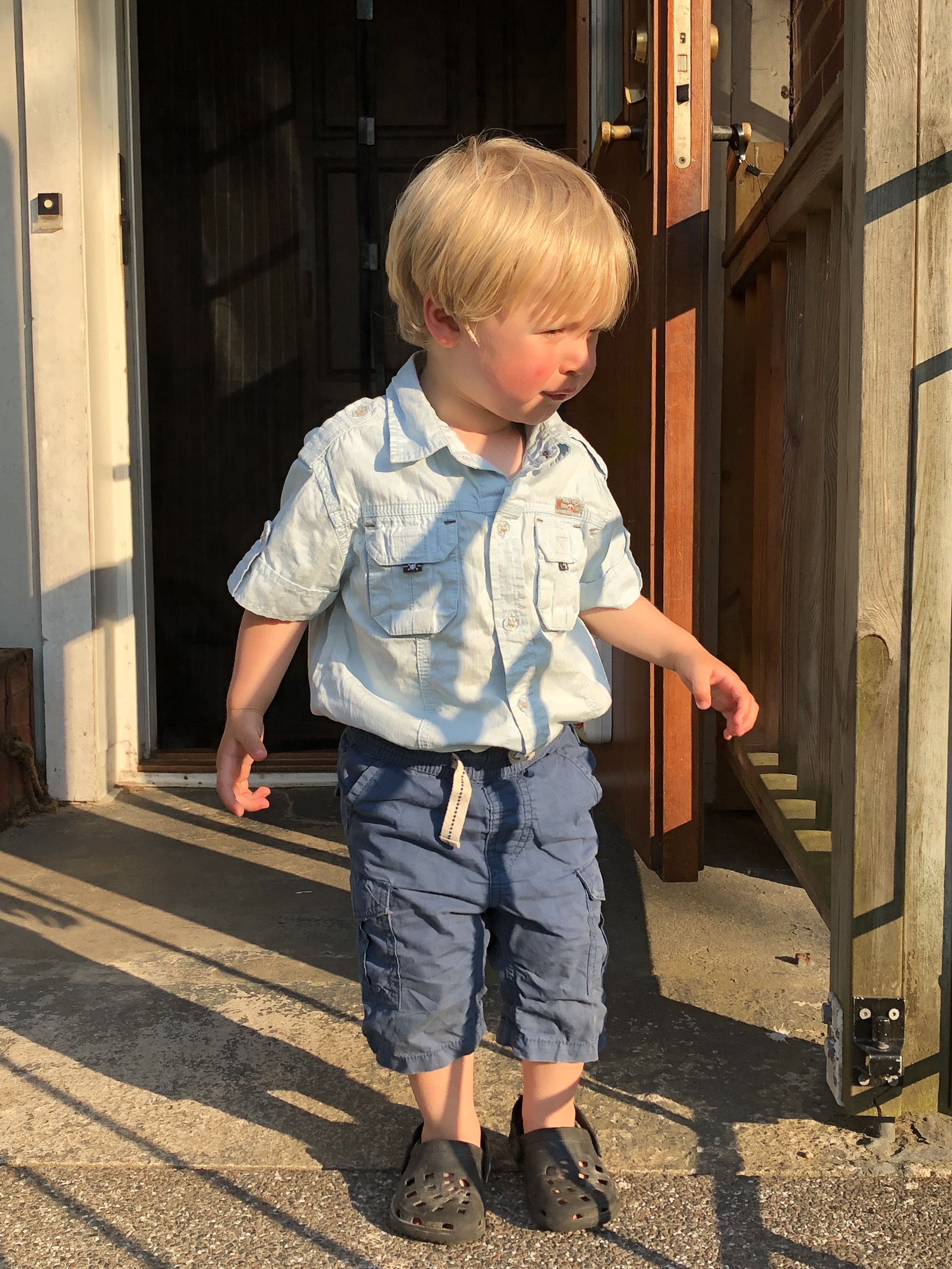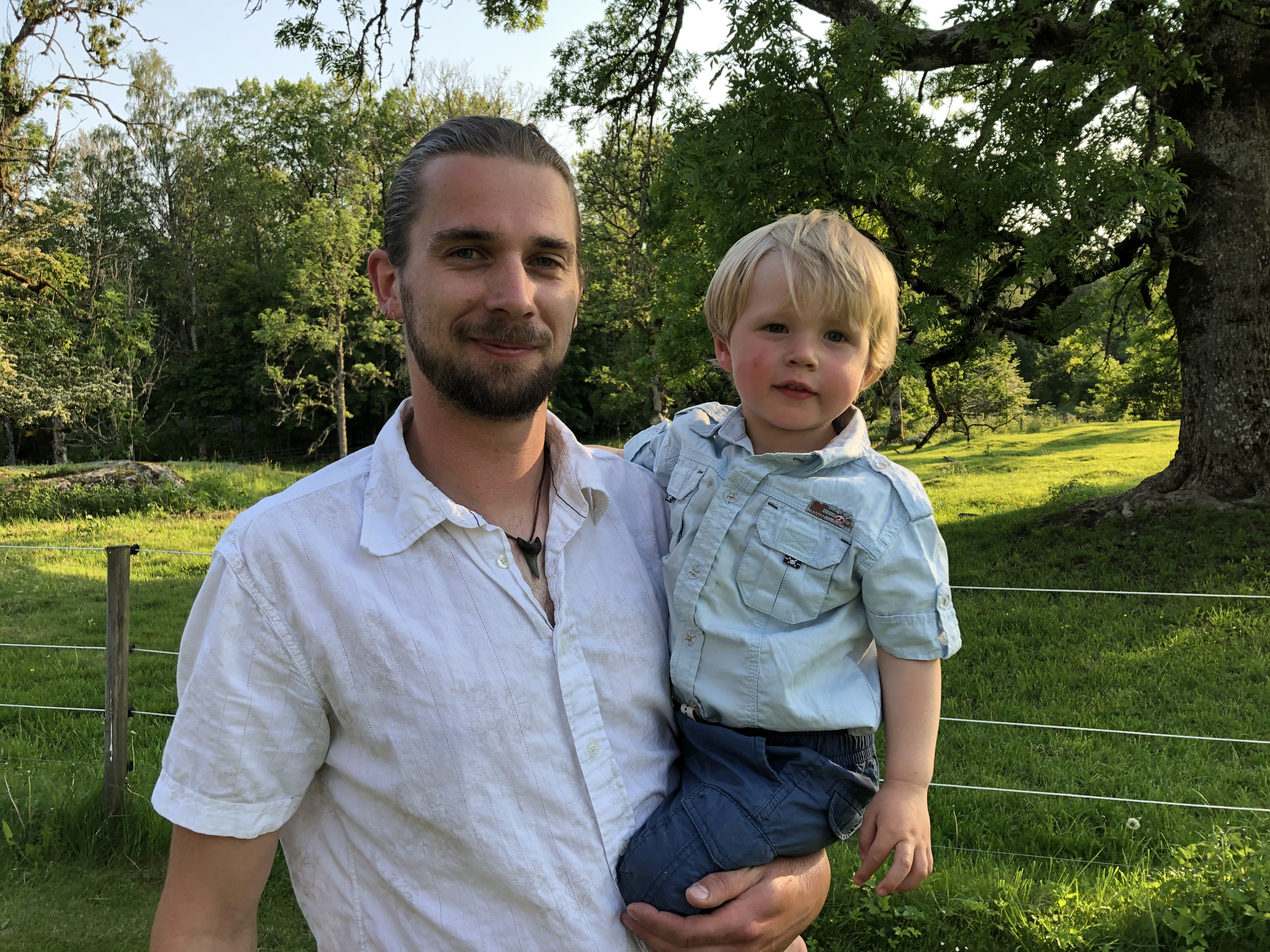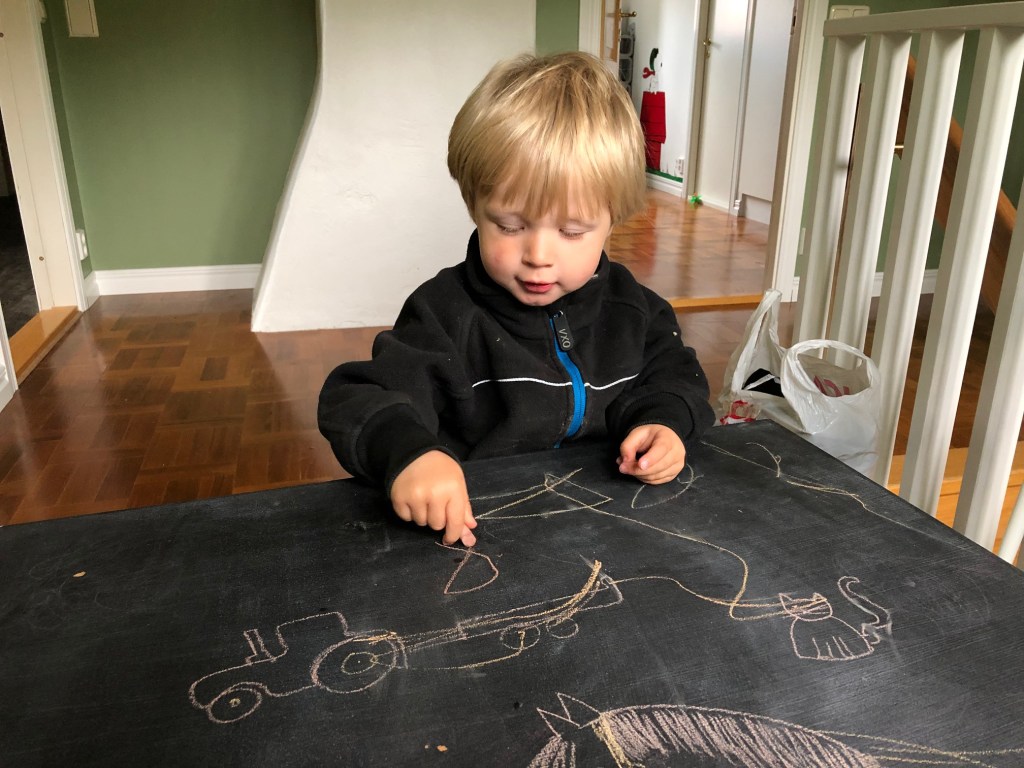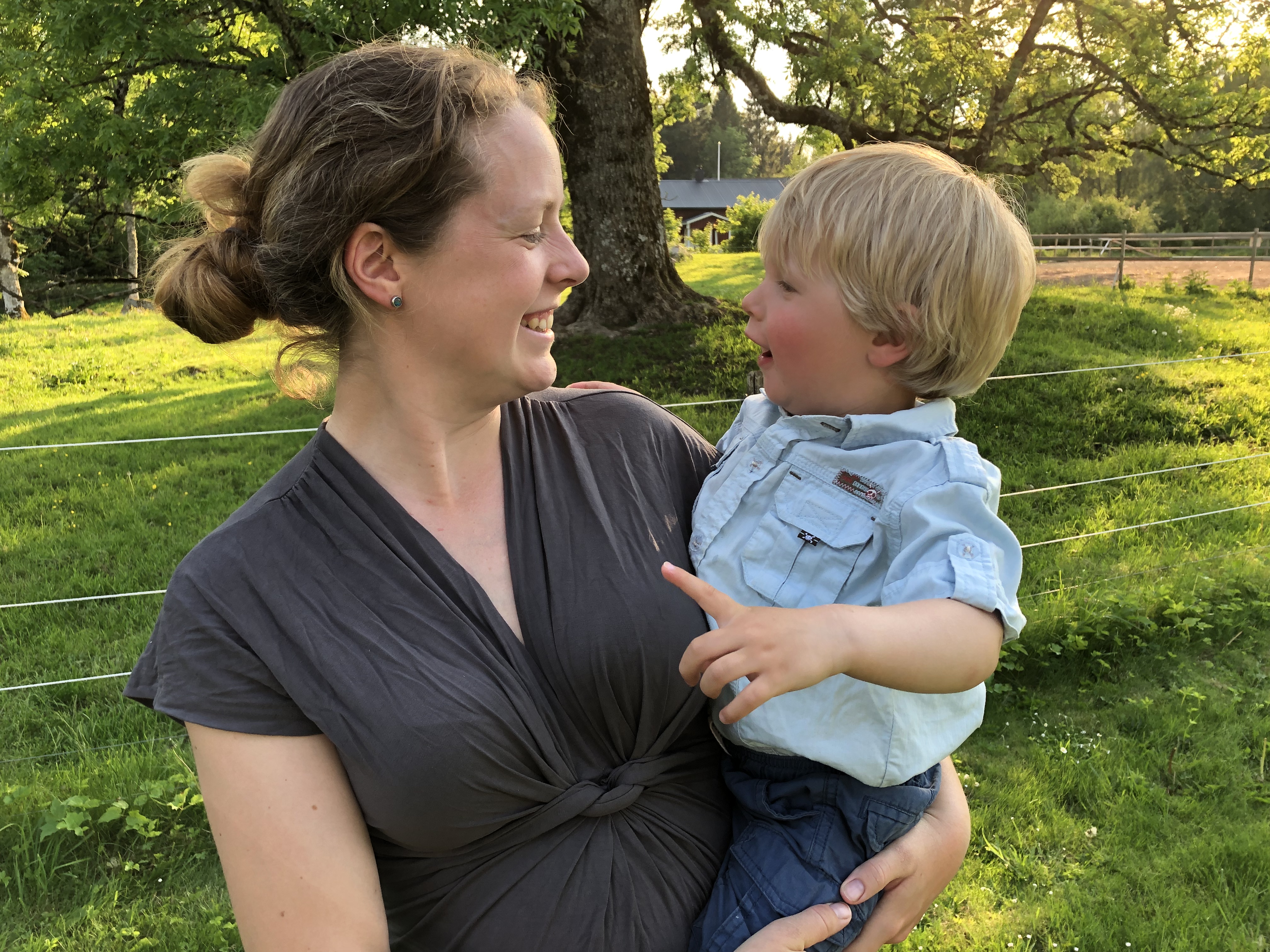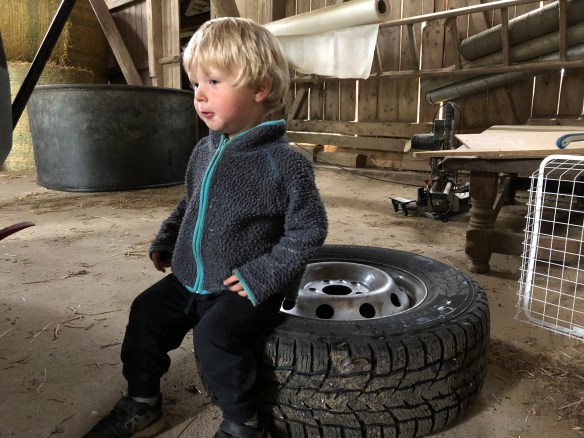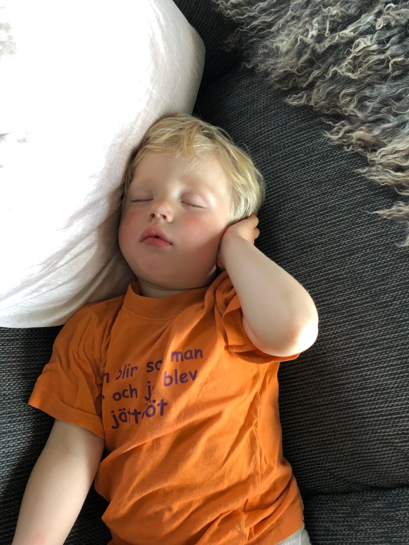 Sen blev han ju inte direkt renare av detta så det fick bli att bad även när vi kom in sen, under lite mer ”kontrollerade former”. Haha. Efter detta åt vi middag och Loke somnade sittandes i sin stol, haha. Ena stunden satt hann och tuggade på sin mat och i nästa satt han och sov, fortfarande med mat i munnen. Så går det när man inte sover när man ska! Men jag petade lite på honom och han piggnade på sig faktiskt och vi kunde leka en timme till. Och stänga in hönsen, hämta dagens ägg från Silver och plocka in grejerna från gräsmattan. Och sen fick han sova!