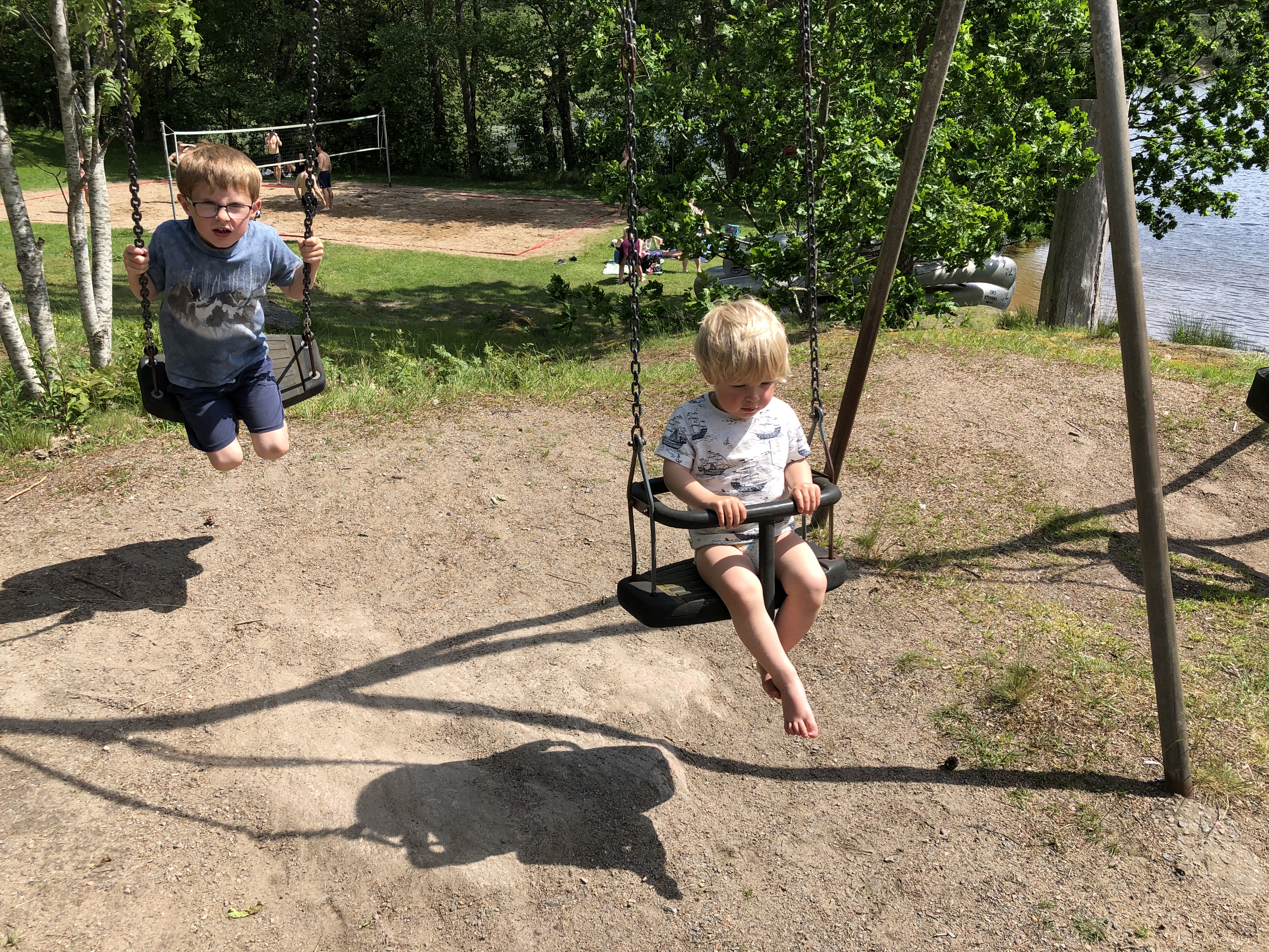 I går förmiddags åkte vi som sagt hem till Enbergs för att fira en solig och ledig nationaldag. Vi fikade och slappade en stund hemma hos dem först, barnen roade sig gott utan vår hjälp.