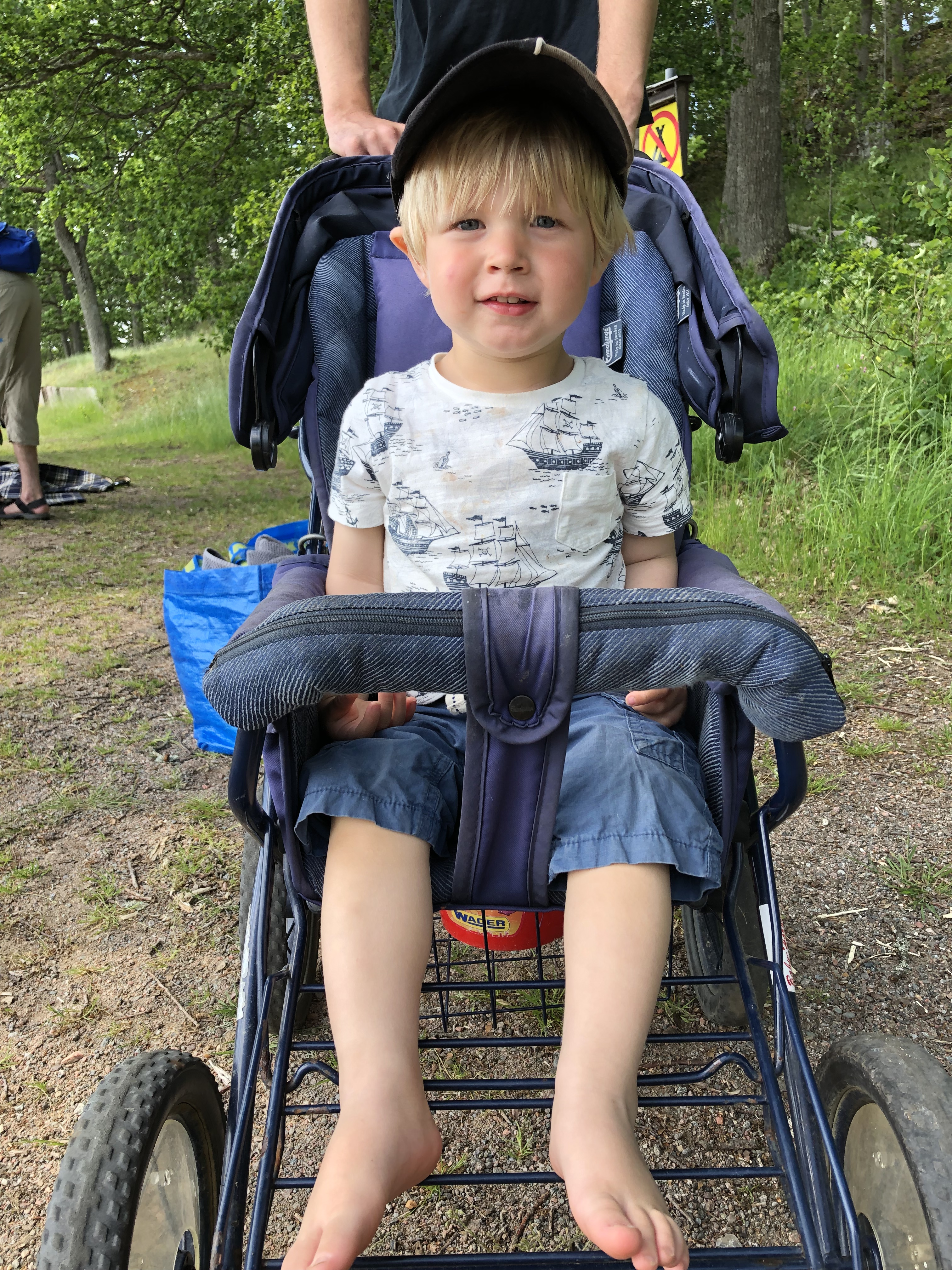 Suddig bild, men han satt så gulligt i vagnen så tar med den ändå!