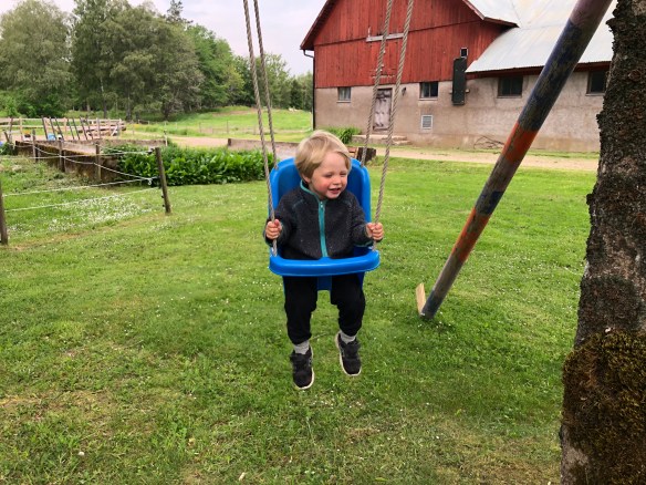 Loke gillar gungan som Axel har satt upp i trädgården.