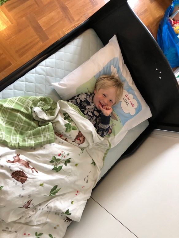 Och så klurar vi på om det är dags att byta ut spjälsängen mot växasängen kanske, efter att Loke nästan klättrat ur spjälsängen. Vi har provlegat i alla fall och plockat fram traktor-örngottet!