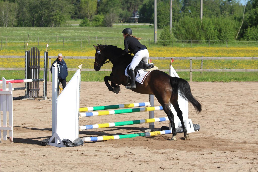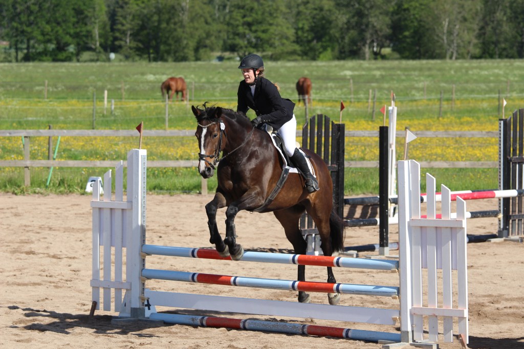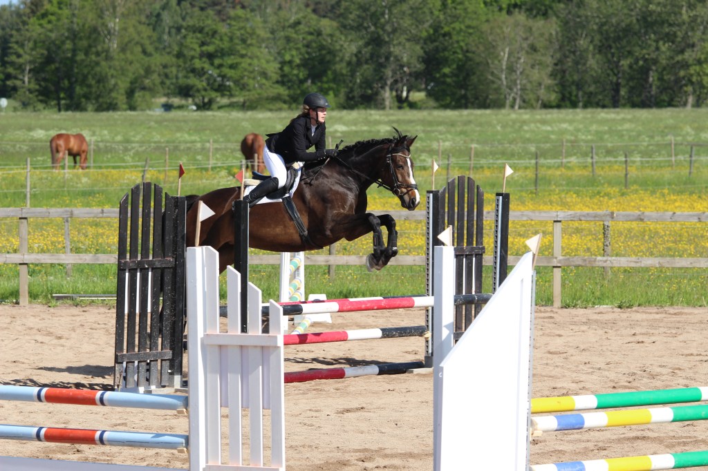 Ja idag var det inte min och Kaprifols tävlingsdag kan man nog minst sagt säga! Huvudproblemet till första klassen var att jag planerade tiden helt fel och hann inte riktigt värma upp ordentligt utan det blev lite stressigt och hafsigt. Framhoppningen gick helt okej ändå, och inne på banan fick vi två stop. Ett på ettan, ett riktigt typiskt ”vi är inte igång-stop” och sen på femman tror jag, ett räcke där hon plötsligt blev jättetittig och det märktes väl tjugo meter innan hindret att vi skulle stanna typ!