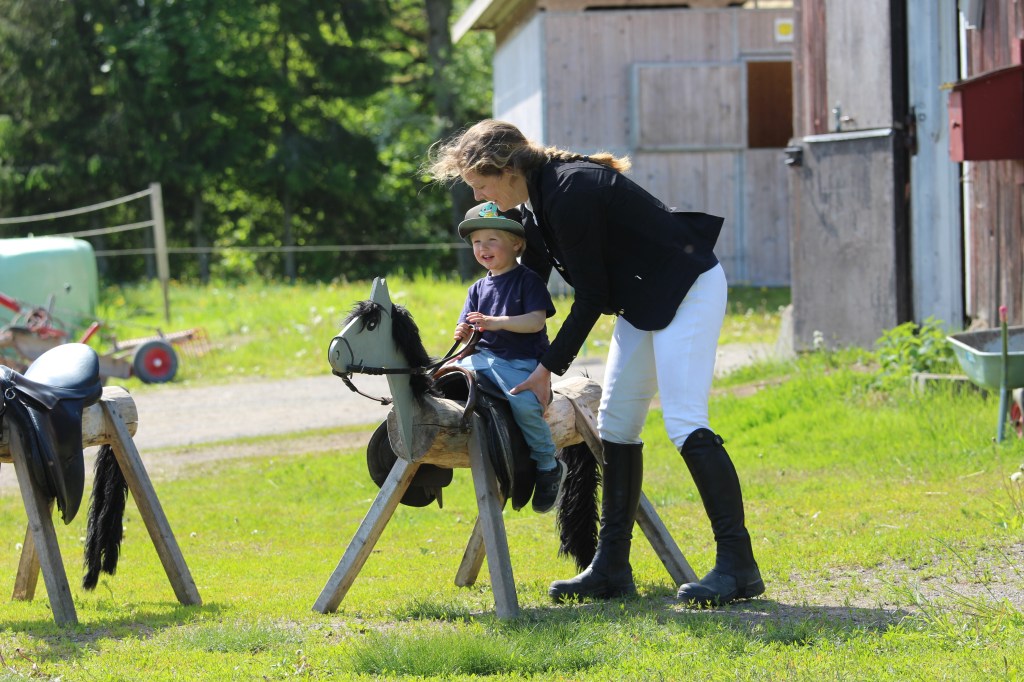 Vid tretiden packade vi ihop oss och åkte hem till vardera hus. Loke sov gott i bilen på vägen hem och så stannade vi och handlade lite för resten av helgen. Och glass köpte vi också som vi kalasade på när vi kom hem. Under kvällen har vi inte gjort många knop, men det blev en hissbar putskrok i sadelkammaren!
