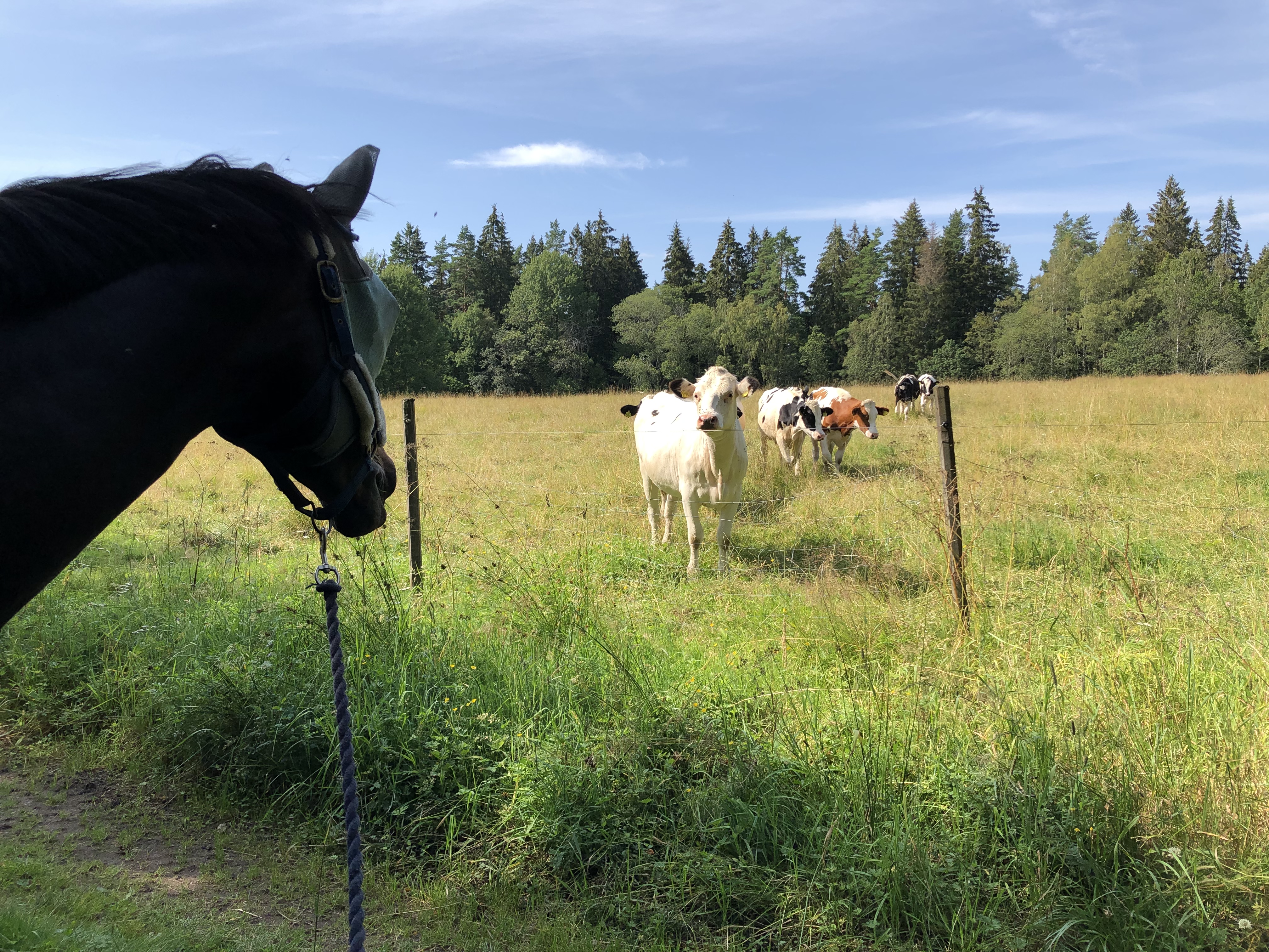Efter lunch gick jag en promenad med Loke så han skulle somna, och Kaprifol fick hänga med och få sin dagliga skrittrunda. Jag var extra ”multitaskad” idag och styrde promenaden förbi lammen borta vid tennisbanan, så fick de dagens tillsyn också.