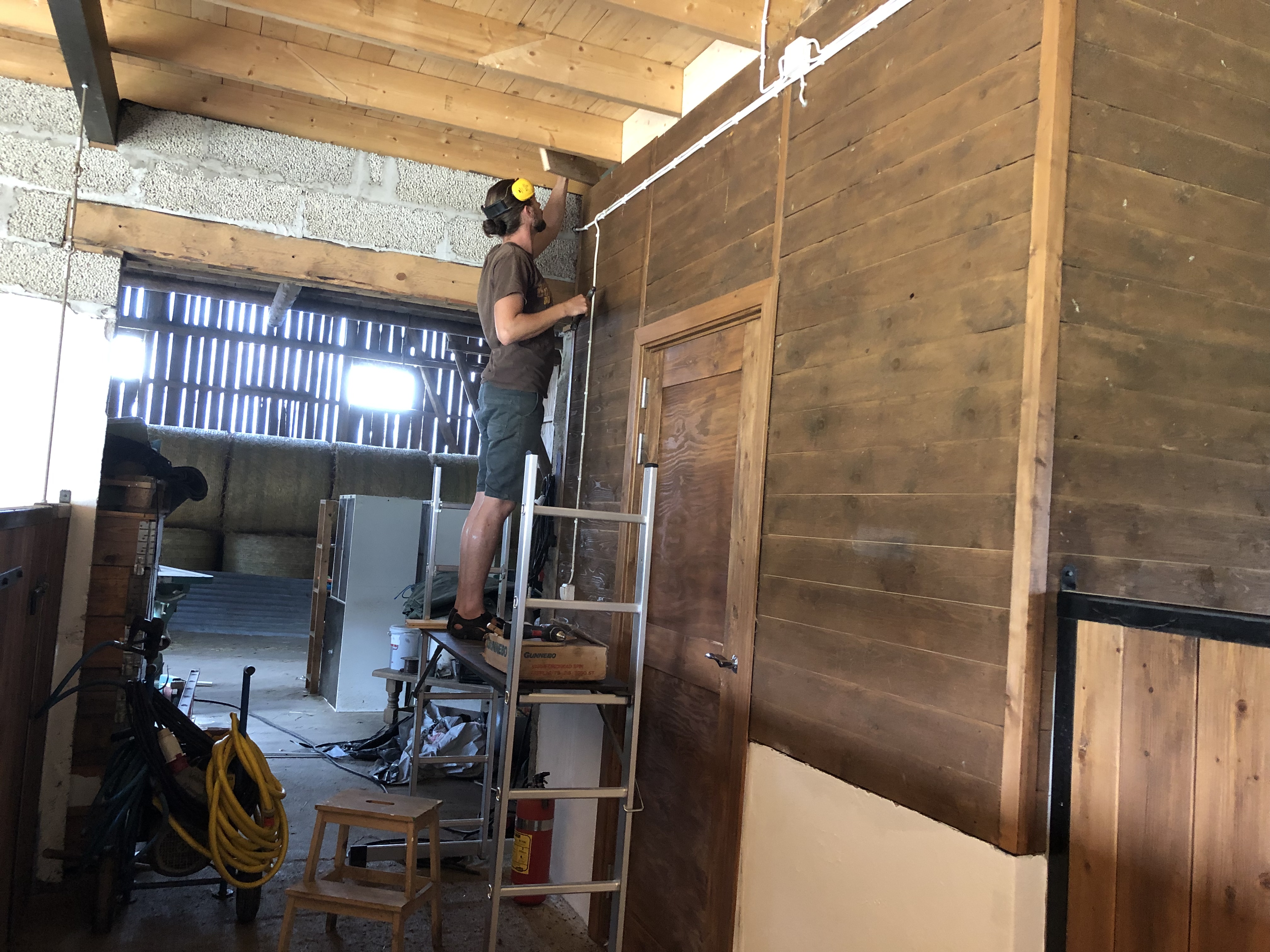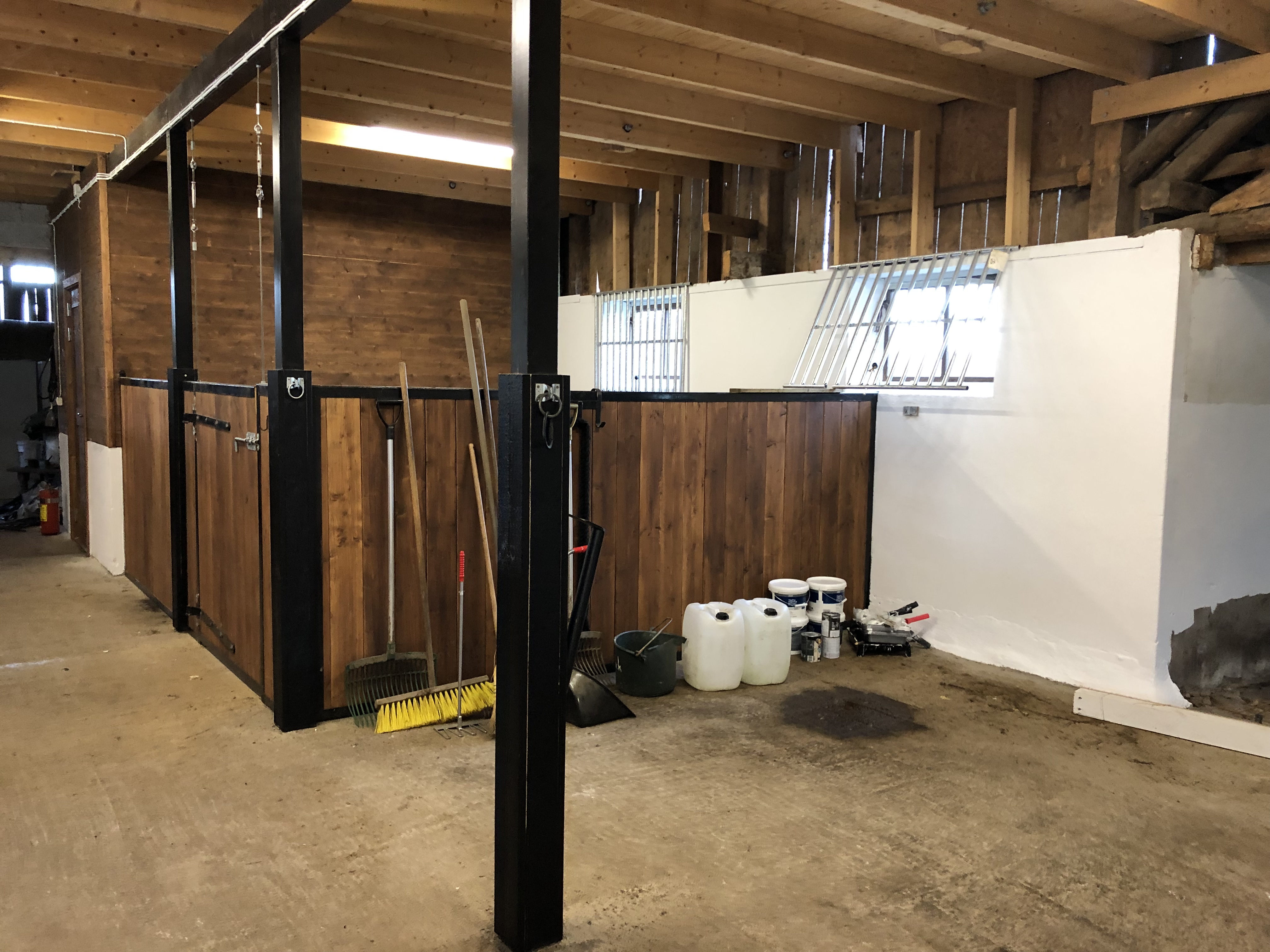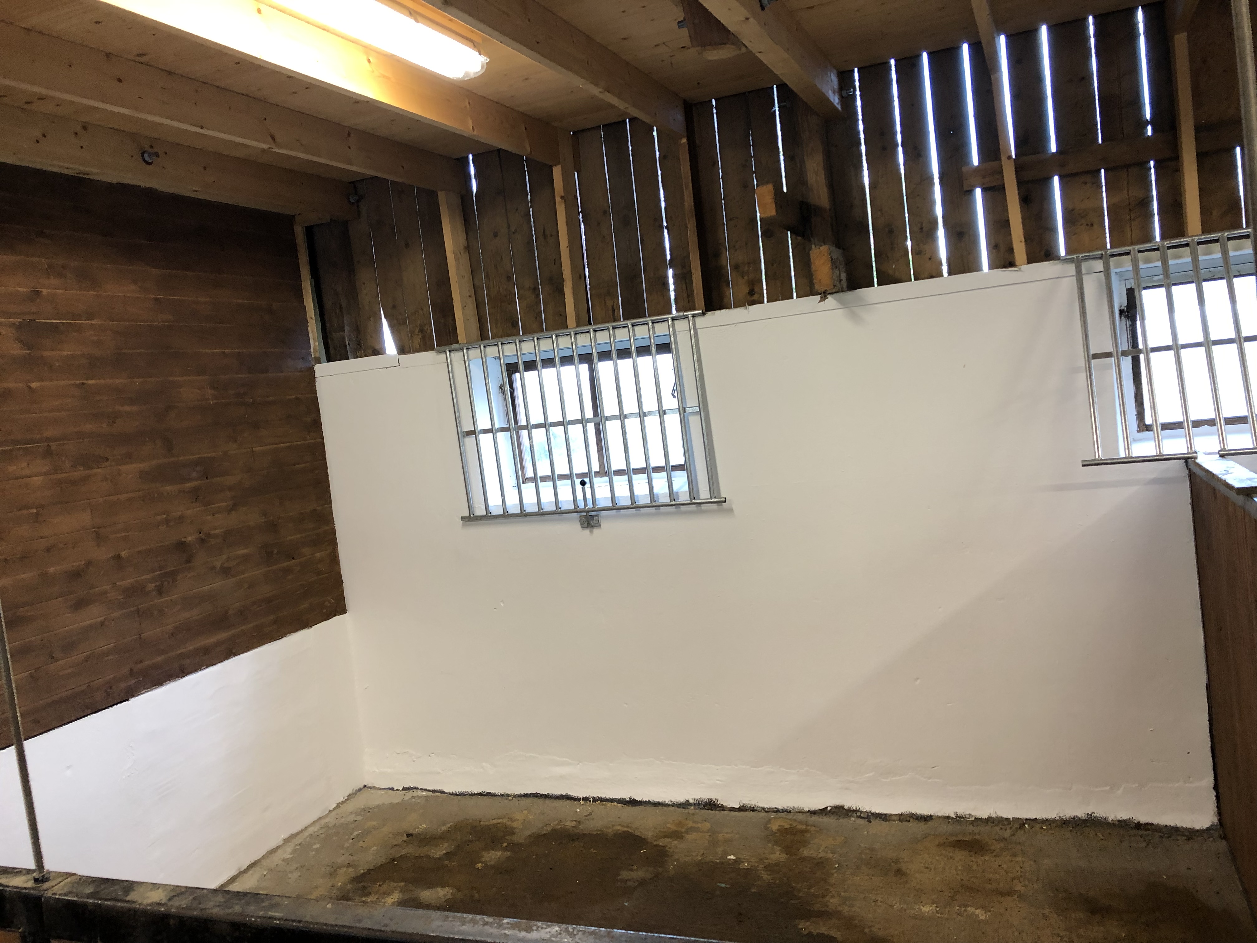 Jag inledde min dag med att måla lite i stallet. Först fick den nyuppsatta sponten ovanför torkrummet lite lasyr.