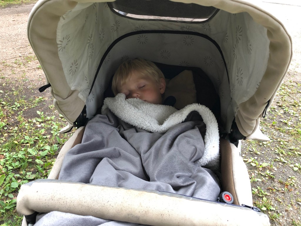 Det var ju minst sagt lite kyligare igår så Loke var lite mer inpackad i vagnen än de senaste dagarna.