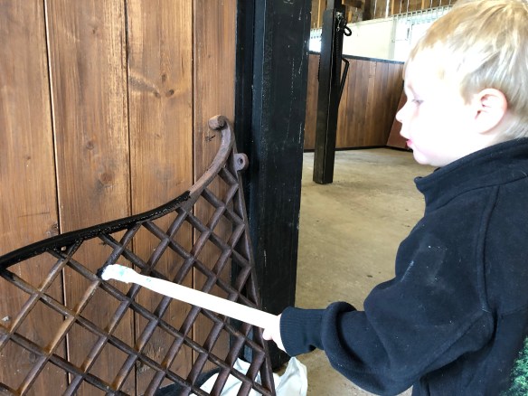 Den andra saken som vi i alla fall fick avbockat på listan (som redan fyllts på med mer då) är att gallret blivit målat. Vad det ska användas till tar vi en annan dag.