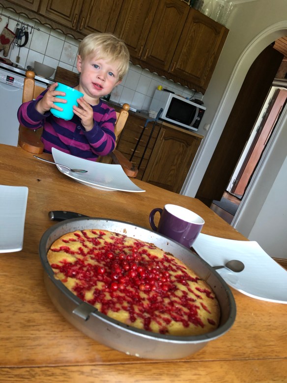 Medan Loke sov lunch skrev Axel vidare på sin artikel som ska in idag, han har jobbat på den några timmar varje dag den senaste veckan. Jag målade lite falurött på verkstan. Glömde bildbeviset dock. När Loke vaknat bakade vi vinbärskaka och fikade!