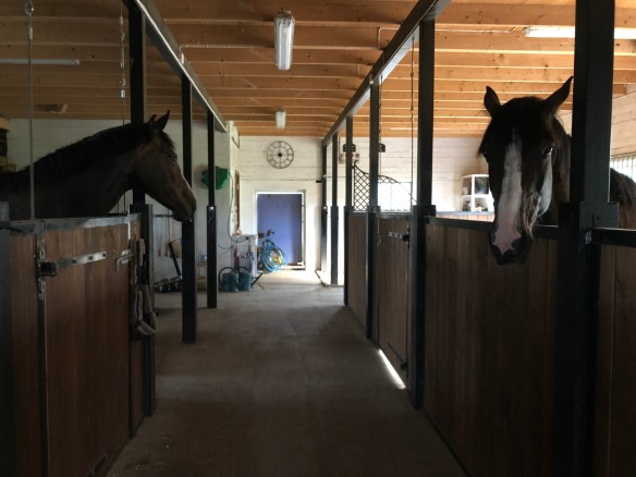 Förmiddagen har flutit på lugnt. Kaprifol har fått lite ompyssling, ren box och nytt hö och vatten. Hon tar boxvilan bra men ser dödligt förolämpad ut och verkar tro att hon är instängd för livet. Men bara tills i morgon lyckligtvis! De andra hästarna är snälla och håller henne sällskap större delen av tiden och äter gräs i skift.