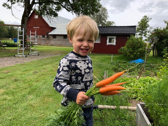 Och så skördade vi morötter och rödbetor i grönsakslandet till kvällens middag!
