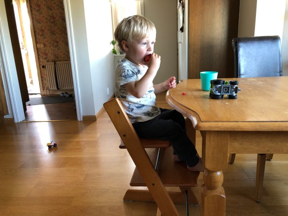 Idag är vi på resande fot igen. Hade inte Loke vaknat och varit pigg som en lärka 06.10 så hade klockan ringt 06.30. Han sover för övrigt utan blöja sen nästan en vecka tillbaka och vi har inte haft några ”olyckor”. Enda sen vi slutade med kvällsvällingen har han varit helt torr på natten.