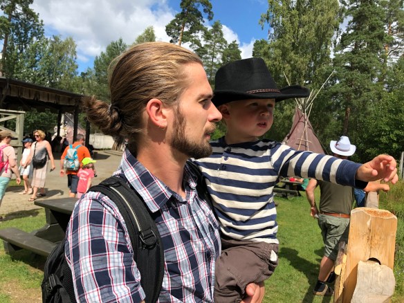 Han fick ingen pistol dock, tänkte att han nog kan få bli lite äldre först. Vi hade en härlig dag! Vi såg lite av en Indianshow.