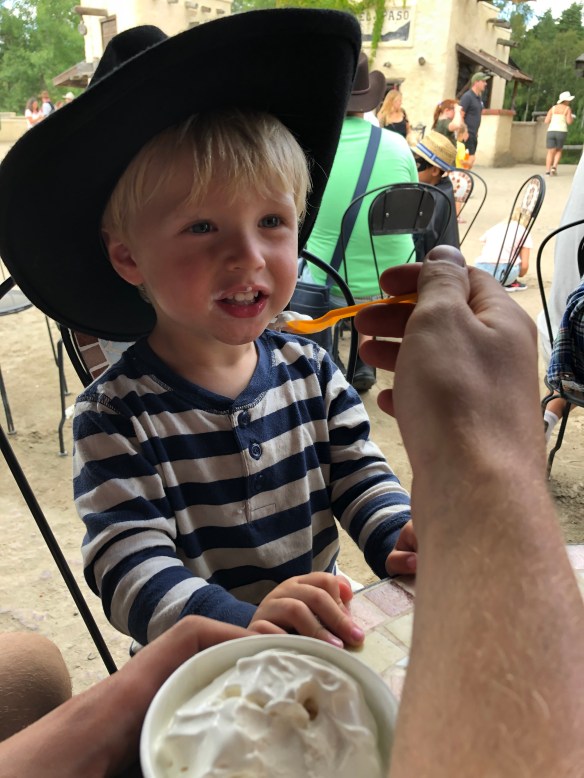 Och fick stoppa i våra sista pommes frites i ett plastglas för att hinna i tid till Vilda Västern-showen.