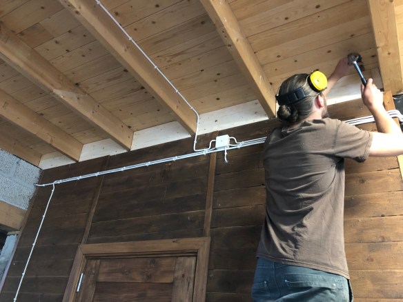 Och så fick vi upp spontbräd-bitar över torkrummet, en sån där liten skitgrej som aldrig blev gjort av nån anledning. Svalboet åkte ut och brädor upp. Blir till att lasera dem bruna nån dag också.