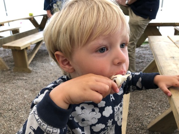 När vi åkt ett varv fikade vi också, kanelbulle till Axel, glass till mig och en dammsugare till Loke. Och ja Loke fick smaka lite på min glass också.