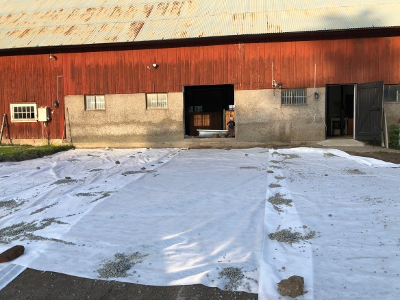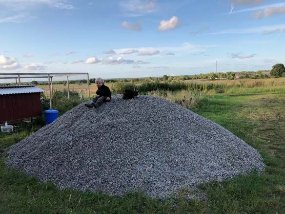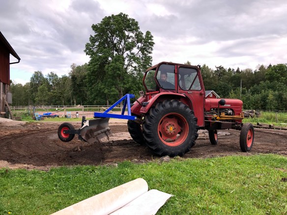 Roligare besked fick vi när vi ringde grusleverantören och beställde grus till stallet, de kommer redan idag, (onsdag)! Marken jämnade Axel och traktorn till häromdagen och markduk är utlagt.