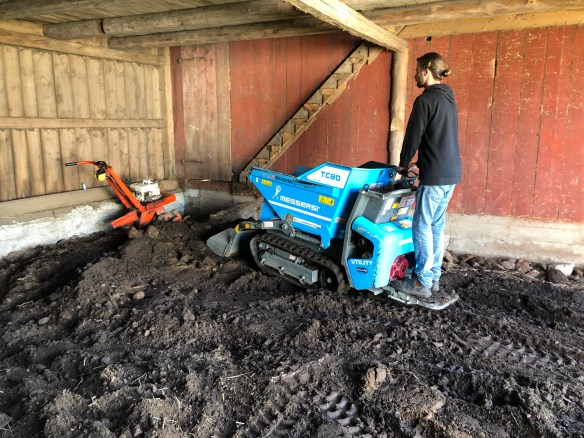 En minidumper! Den ska hjälpa oss att ta ut lite jord ur fårhuset och lägga in grus. En padda har vi hyrt också och så kanske vi hinner lägga lite armering också, vi får se!