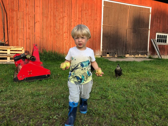 Efter kvällens middag åkte Axel på jaktmöte och jag och Loke plockade fallna äpplen i en av hagarna och la in i stallet. Och så gick vi och pussade lite på Kaprifol och gav henne några äpplen. En vecka kvar till operation!