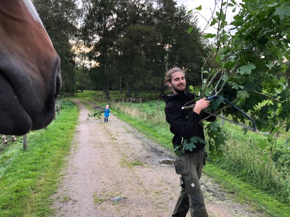 Igår kväll fick jag extra hjälp i stallet också, grabbarna hämtade mer grenar.