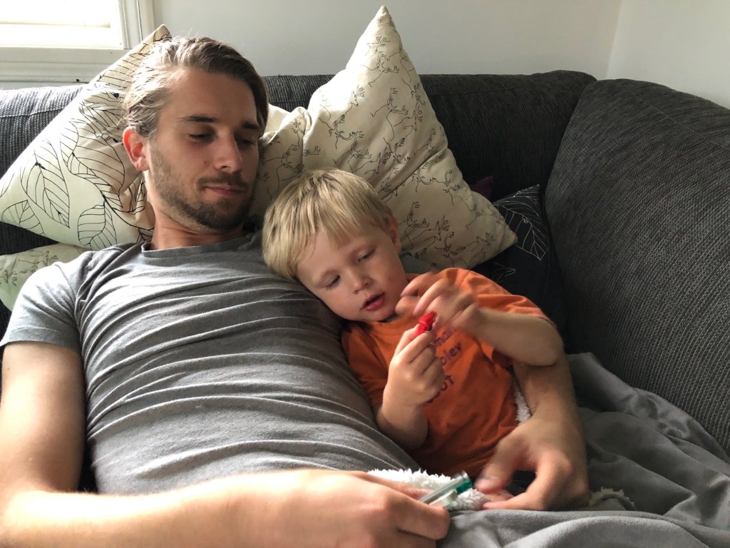 Loke hade feber även på em/kvällskvisten så vi bestämde att Axel skulle stanna hemma och VAB:a idag. Turas om lite liksom, samt att jag har två möten på jobbet idag.