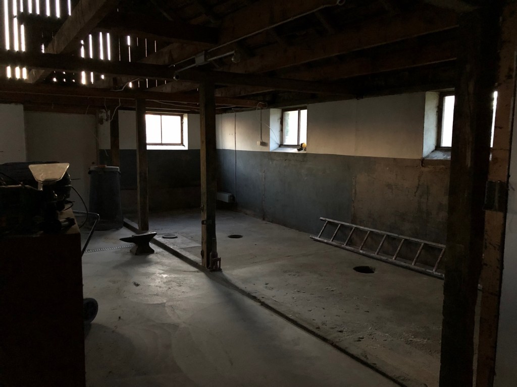 När Loke somnat för kvällen igår gick vi ut och ställde tillbaka lite grejer i verkstan som vi ställt i stallet medan Axel tvättat. Vi har ju inga lampor där inne så det var ingen idé att ta nån bild, och det var det väl inte i morse heller men jag gjorde ett försök i alla fall! Visar ju inget, men den långa bänken är ute i alla fall och århundradets senaste gris-och-koskit från väggen vid det högra fönstret är borta